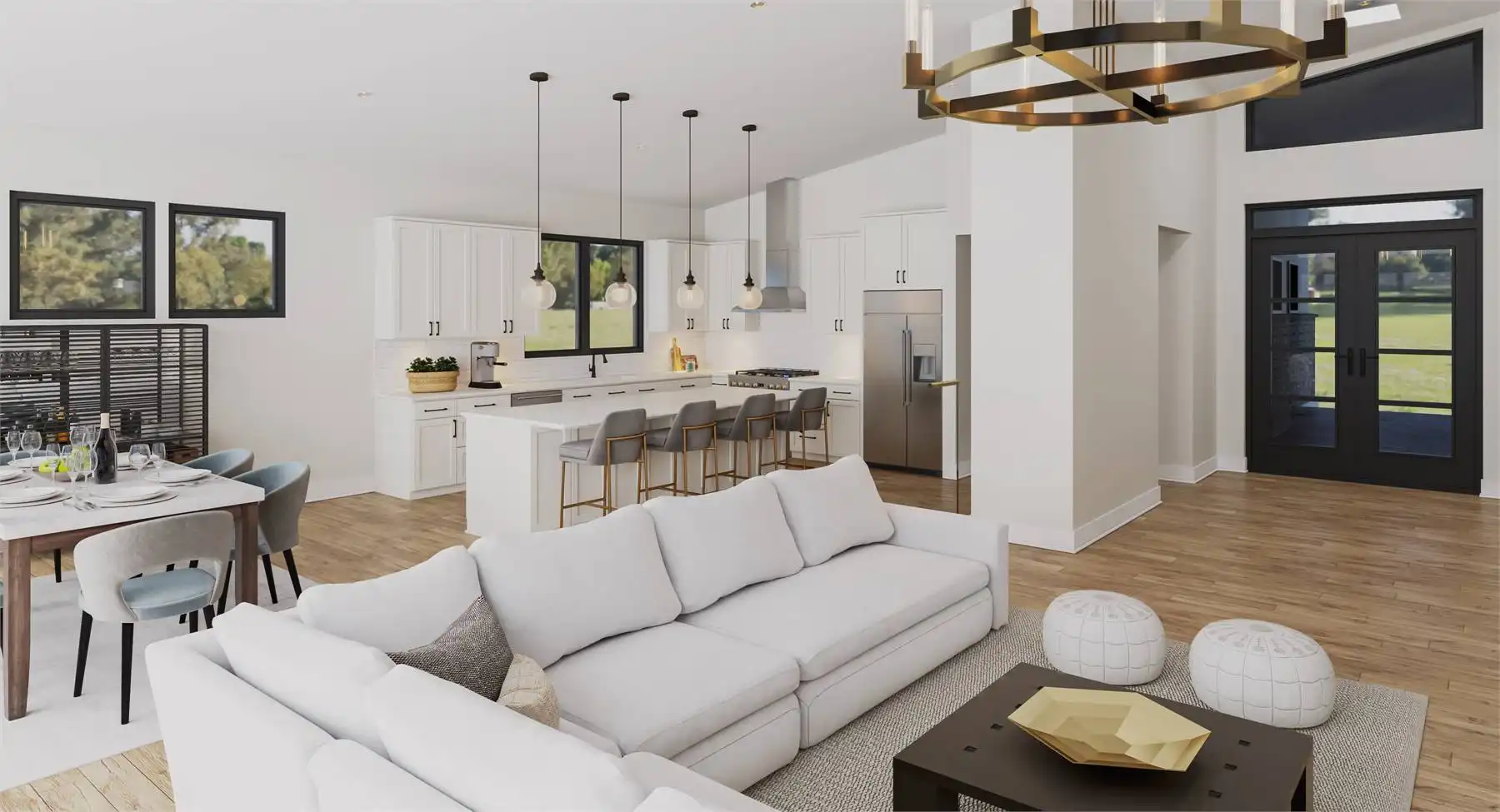 With dramatic modern style, plenty of glass, and vaulted ceilings galore, House Plan 2972 stands out from the crowd! It offers 2,769 square feet, three bedrooms, and three-and-a-half bathrooms, so it's a great size for a growing family, too. The layout includes totally open living space, a front hallway with two bedroom suites, and a back hallway with the primary suite and an office. The foyer, great room, primary bedroom, office, and one of the secondary bedrooms all have vaulted ceilings overhead! You'll love the vaulted outdoor living in back, too!