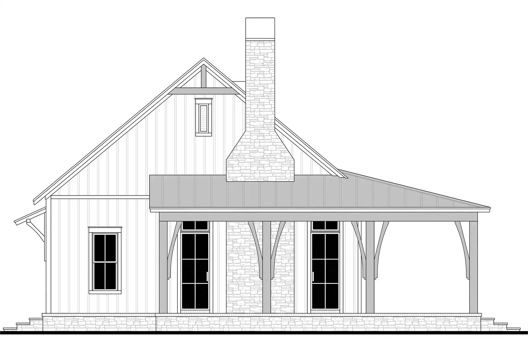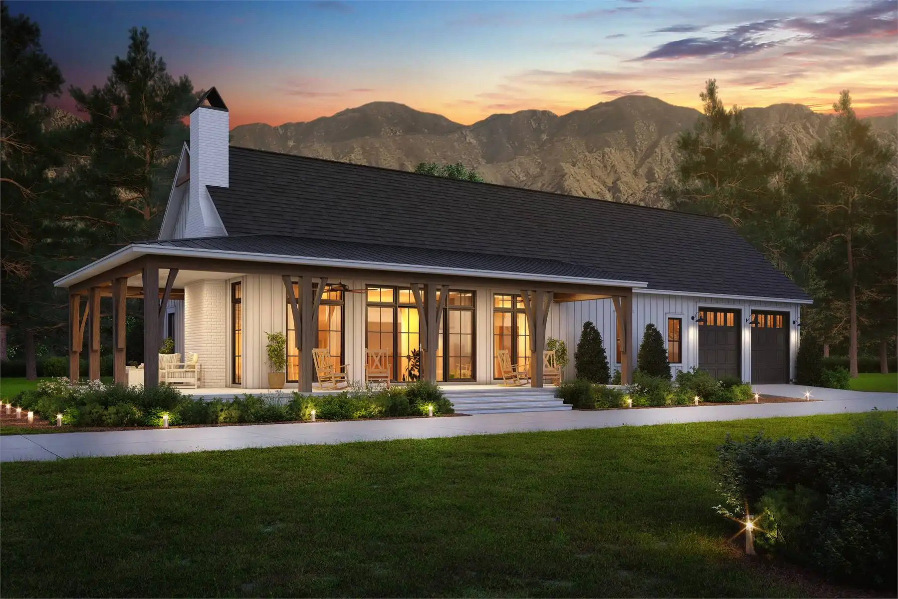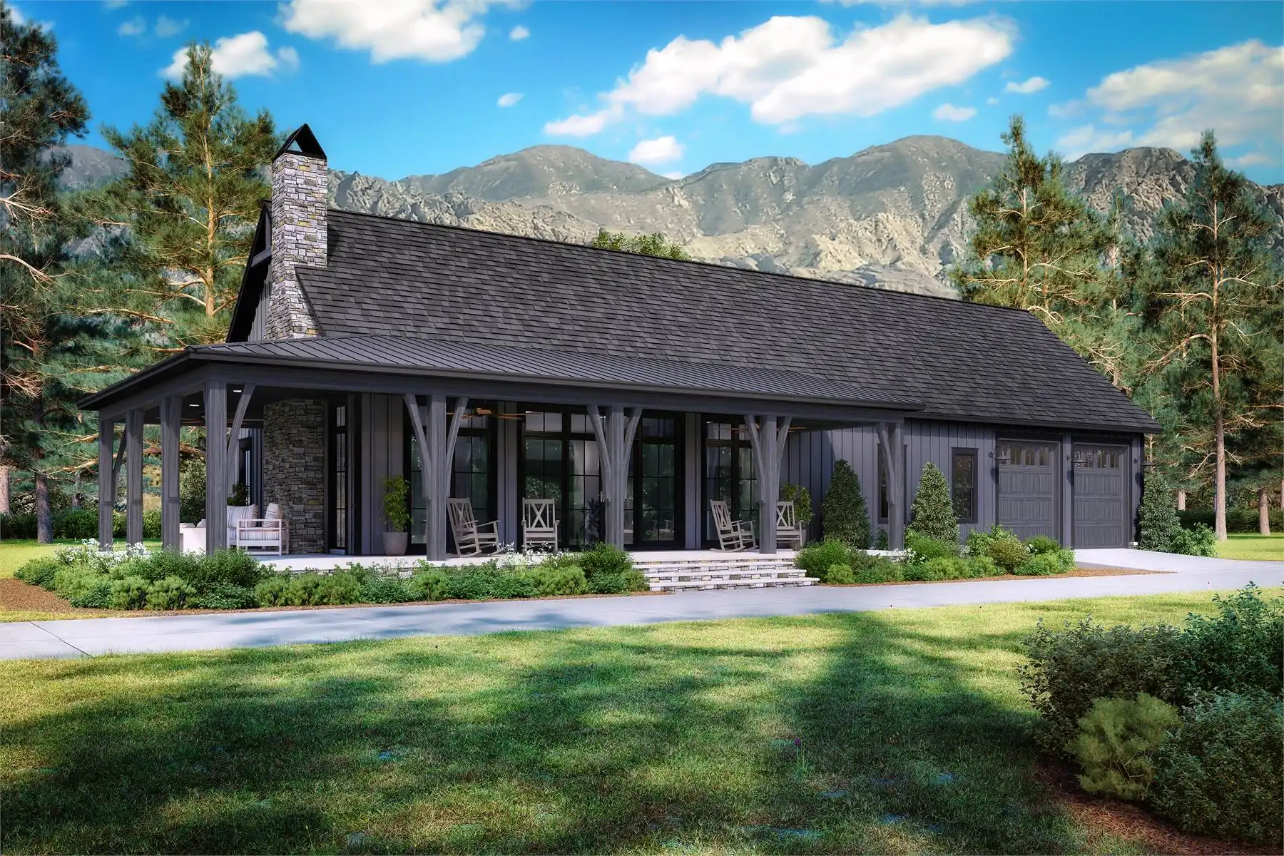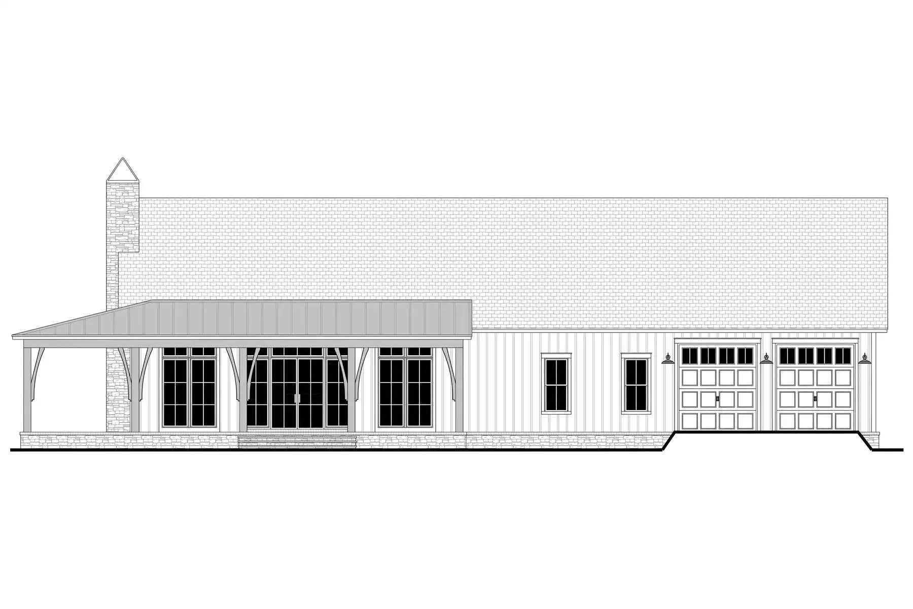 Welcome to House Plan 2975, a barndominium that combines comfort and style. Inside, the main living area features a vaulted ceiling that flows into the large open kitchen with a walk-in pantry, perfect for gatherings. The split bedroom design provides privacy, with the primary suite offering an ensuite bath and walk-in closet, while two additional bedrooms and a shared bath are on the other side. A wrap-around porch adds great outdoor space, and the 3-car garage offers plenty of room for vehicles and storage. House Plan 2975 is a smart mix of cozy living and practical design.