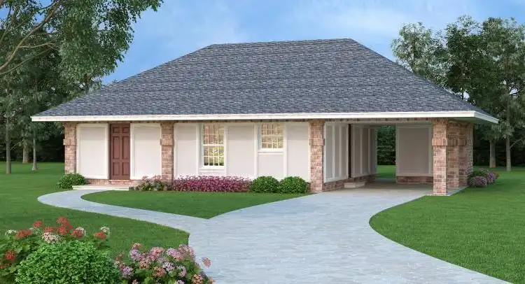 Rarely can you find a home this compact but with 4 bedrooms that are generous in size. This plan is very inexpensive to build but it is a super energy saving home with 2x6 exterior walls. It is designed with numerous features that reduce the heating and cooling cost by 50% yet it cost no more to build than a conventional home. The living spaces are open and airy creating the look of a much larger home. The kitchen is fully appointed and it has a large built-in pantry. The MBR bath is large and it has a walk-in closet and built-in linen closet.