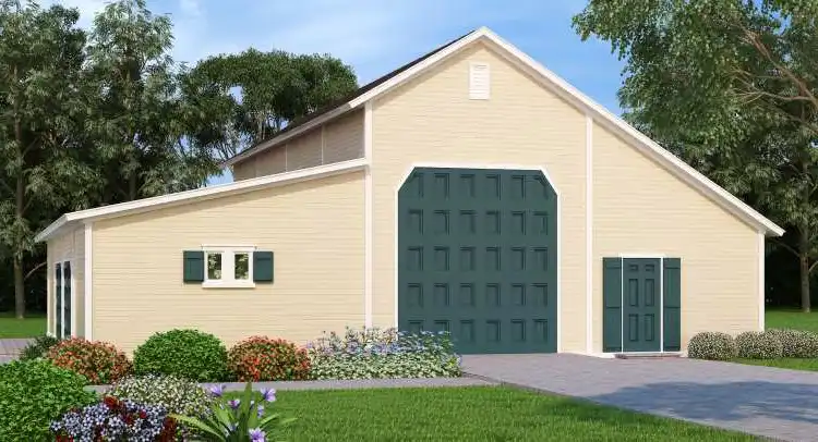 Designed with the exterior appearance of a country barn, this toy barn will hold the biggest RVs and all of your other toys too. The RV bay has 16' high ceilings and is accessed through a 12' wide overhead garage door. The door height is 12' but it can easily be modified to 14' high to handle the largest coaches. The RV bay is equipped with a sewer tap, 50 amp electrical outlets and a water hose bib. The equipment storage has two side entry 10' x 8' garage doors so that you can easily store and access jet skis, additional cars or any other adult toys. There is even a shop area to maintain your collection of toys and it has a full length work bench with a built-in sink. The storage room is designed to store your RV supplies and it is accessible from the outside and from the RV bay.