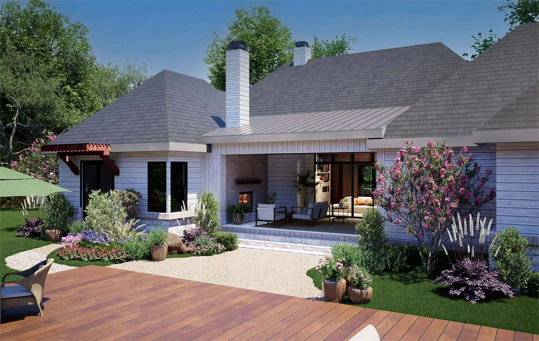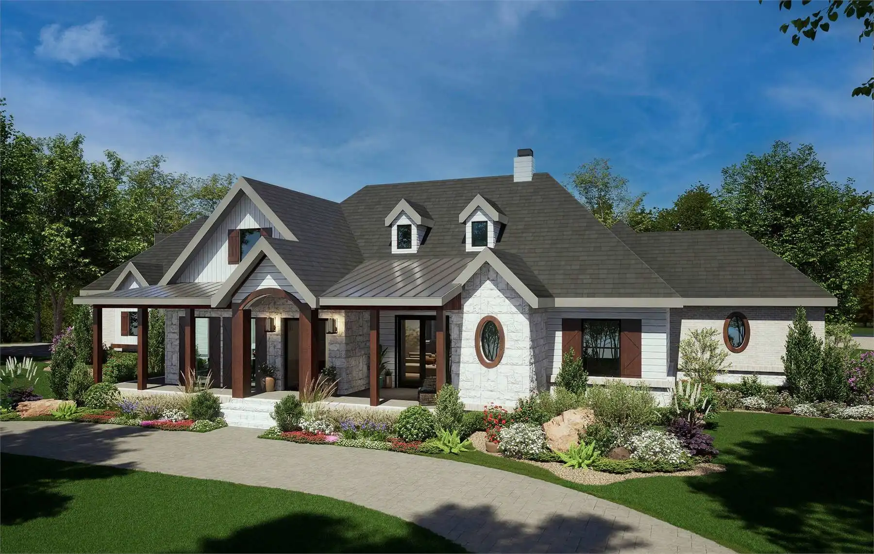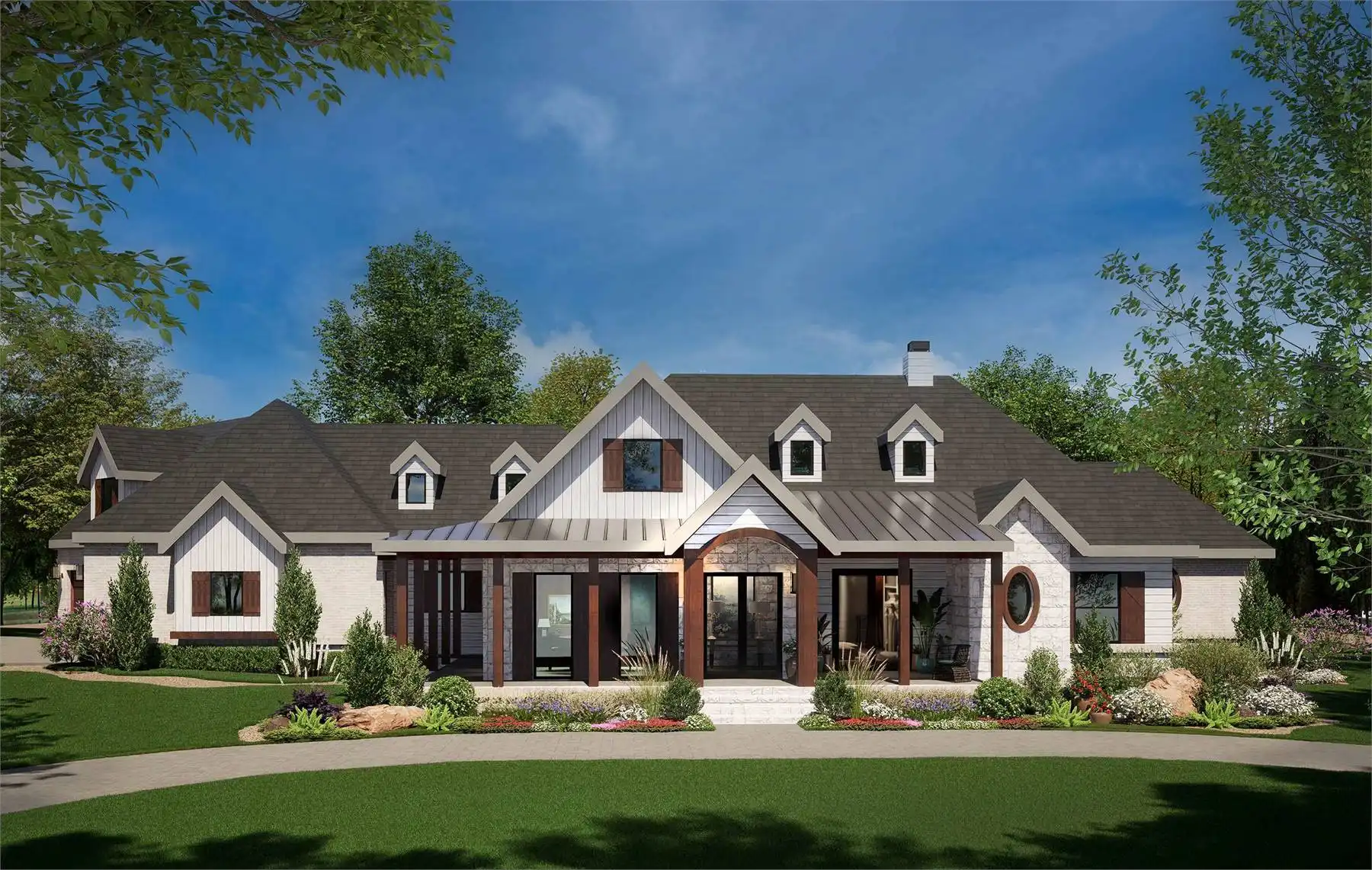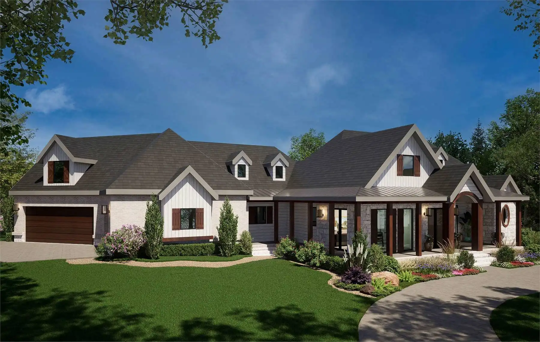 Just look at what House Plan 2981 has to offer in its stunning design! This sprawling layout includes beautiful curb appeal with distinctive porches in front and back and a three-car garage on the side, with one true side-entry bay and a double bay in the angled portion. If you have a large or a corner lot, this home will look great on it! Inside, almost all of the square footage is on one story. There's a beautiful island kitchen overlooking the vaulted great room, formal dining, and three bedroom suites including a grand primary with vaulted ceilings in the bedroom and five-piece bathroom. The game room is upstairs to provide some additional common space.
