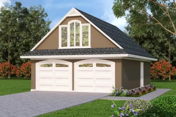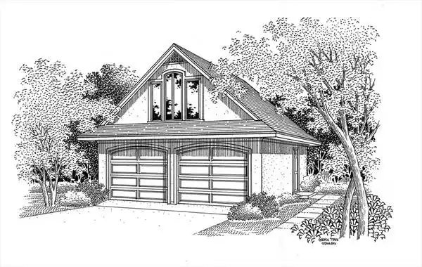 If you need extra space, this plan has it all - 2 bay garage, storage and a bonus room. The bonus room has clipped ceilings, lots of glass and built-in book shelves. The garage area is over sized and features double arch top entry doors.