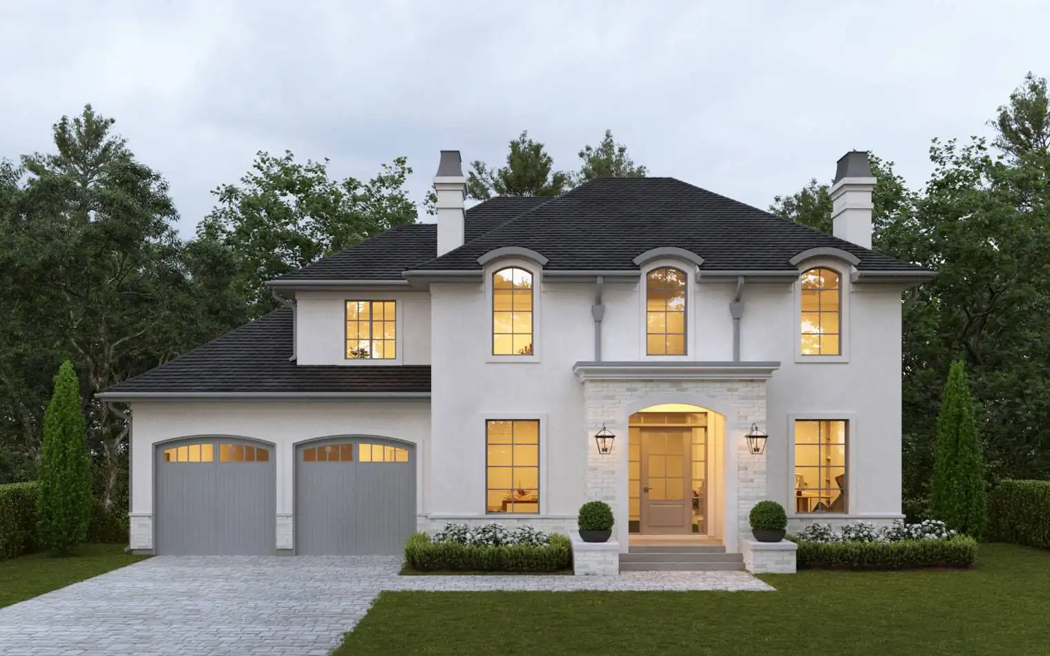 If you have classic tastes and want a larger home with traditional appeal, give House Plan 2994 your consideration! This beautiful two-story home has European and Georgian inspiration and a wonderful floor plan for today's families with 3,415 square feet, four bedrooms, and three-and-a-half bathrooms. The main level features a foyer flanked by a study and formal dining room, open living with a volume great room and island kitchen, and a mudroom coming in from the three-car tandem garage. All four bedrooms are placed upstairs. The primary suite has a vaulted ceiling and a five-piece bath, there's another smaller bedroom suite, and the last two bedrooms have a shared Jack-and-Jill bath. House Plan 2994 also offers covered outdoor space in back for anybody who wants to expand out into the fresh air!