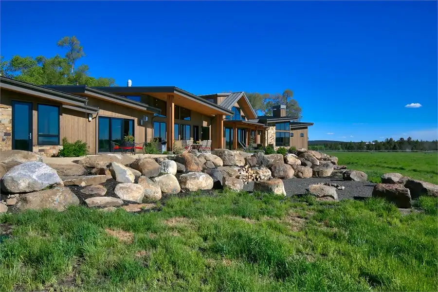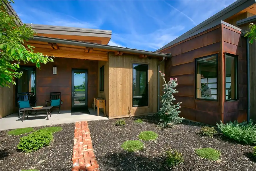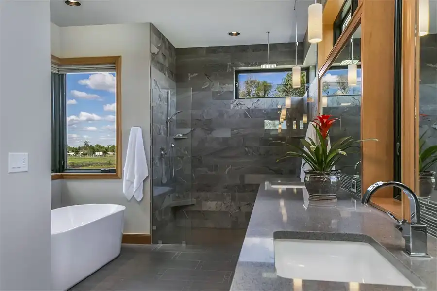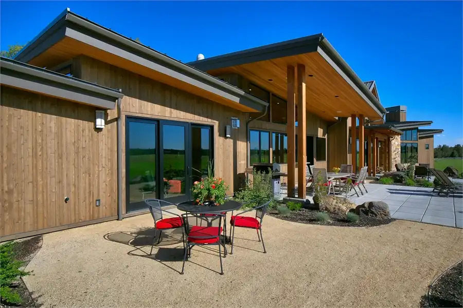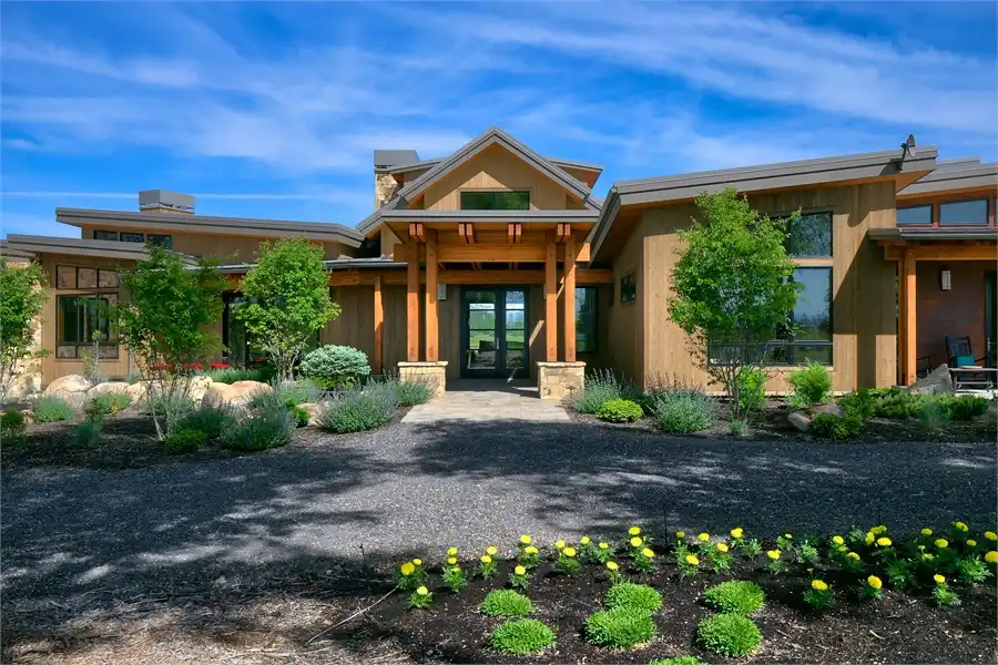 This contemporary one-story house plan is simply stunning! Guests will be excited to tour all 4,036 square feet of the home plan. At the center of the home, the great room certainly lives up to its name! A fireplace adds ambience while sliding glass doors open to your lush backyard. The open kitchen incorporates snack space for four. You can host an outdoor barbecue, thanks to a handy grill. The "west" wing of the home could host aging relatives in their own apartment. The central bedroom suite would be great for a child. The fabulous master suite includes just about everything on your wish list. How about soaking in the garden tub at the end of a busy day?