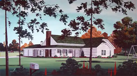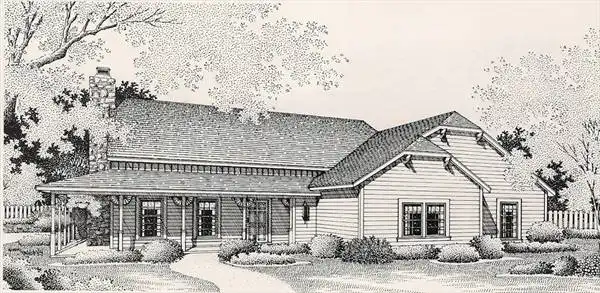 Although this design has the romantic appearance of Grandmas house, it is a super green energy efficient home designed for todays lifestyles. The wrap around porch is only the beginning of the comforts of this nostalgic design. Once inside the foyer, guest can see the gigantic living and dining room with its volume beamed ceilings and enormous stone wood burning fireplace. The dining room floor is raised 6 and post and railing provide a hint of separation from the living room. The gigantic country kitchen boast twin pantries, lazy susans and a desk. The utility room is adjacent to the kitchen and features a separate sewing room. The master suite is king size and the master bath has twin walk-in closets, twin vanities, separate shower and a private toilet area. The game room is tucked in a far corner of the house so the kids can raise the roof without disturbing the guest in the living room.