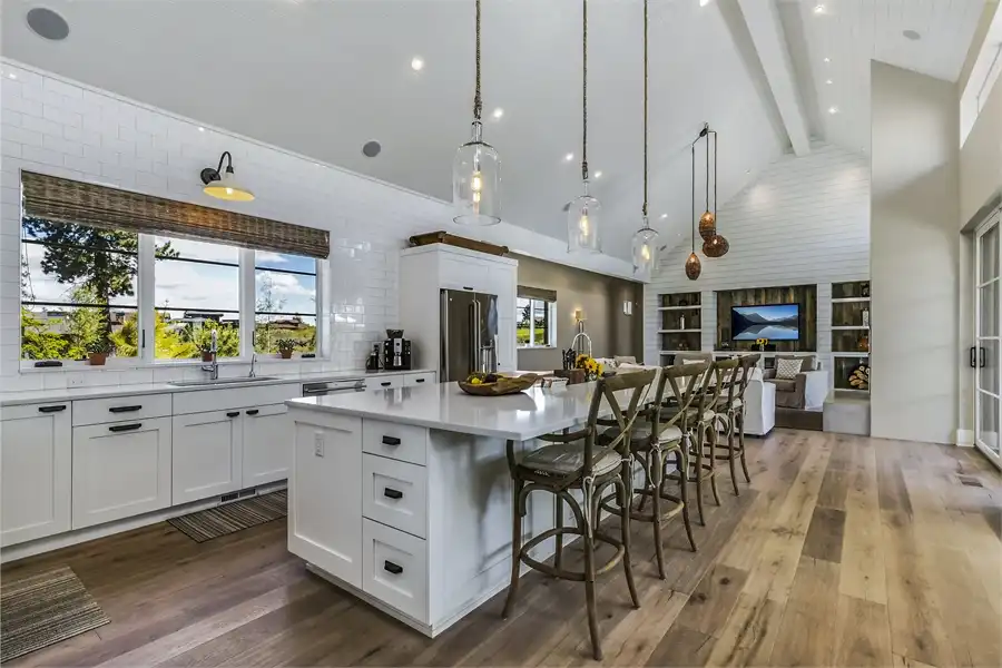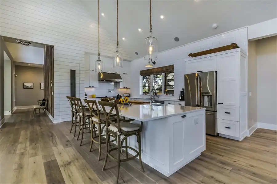 This is a charming contemporary Farm House with 4,882 square feet of heated living space. This floor plan is amazing and one of my favorite features is how the living room and kitchen are merged together, perfect for entertaining guests and it gives a real homey feel to this home. This home has three bedrooms, three bathrooms and one half bath.