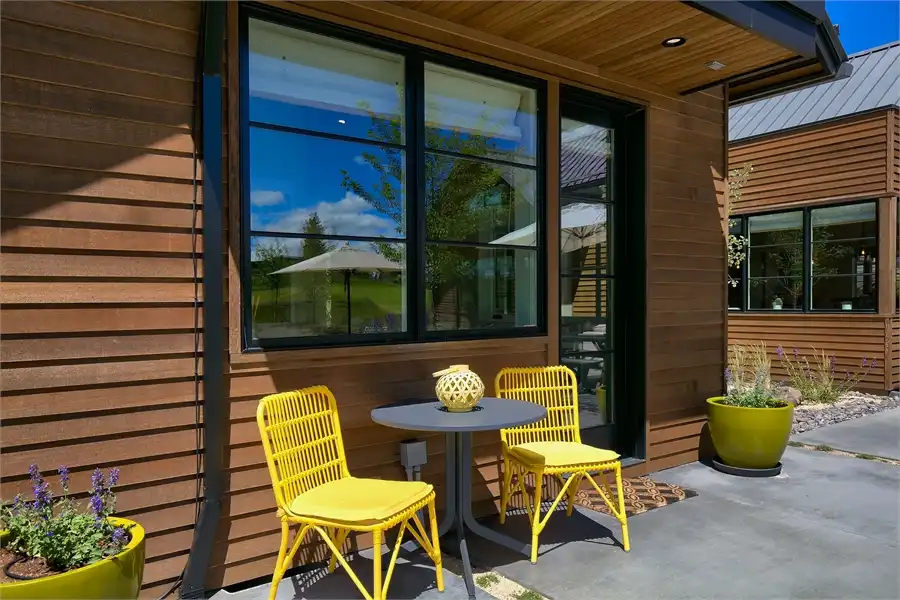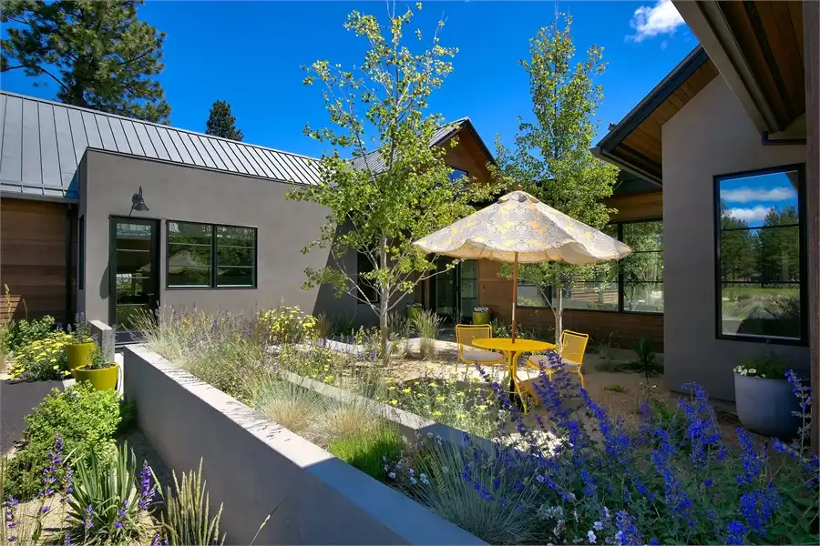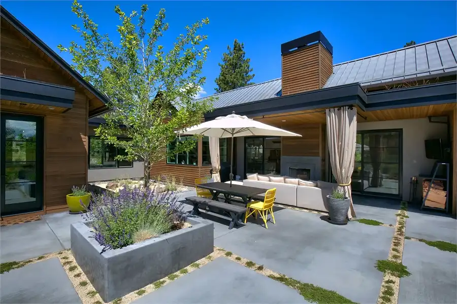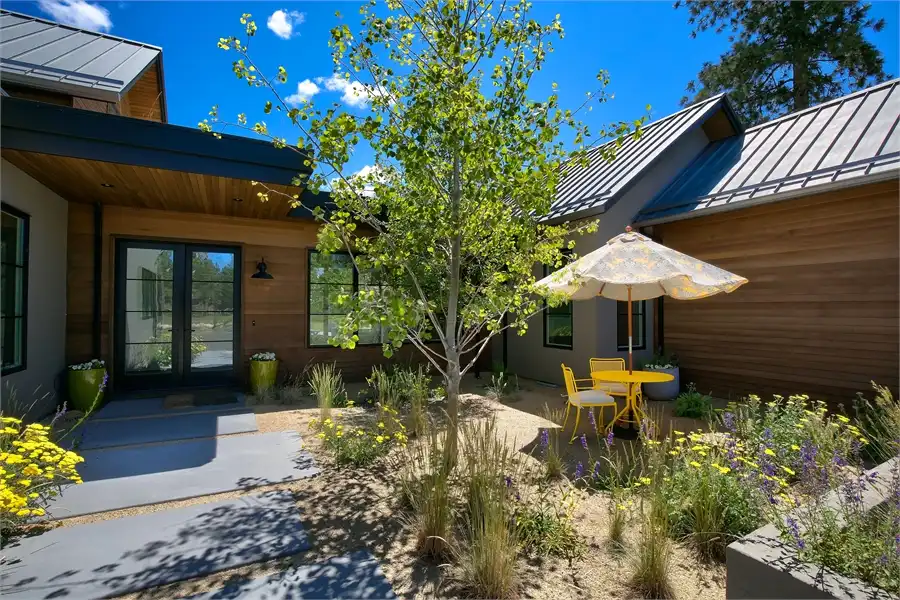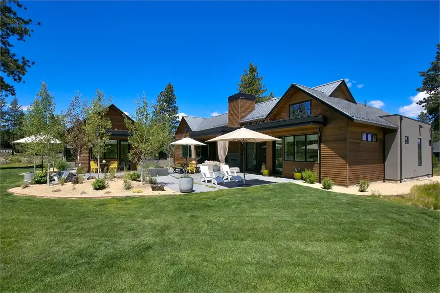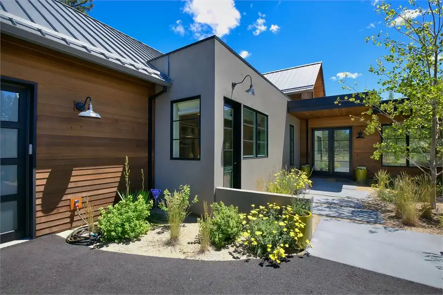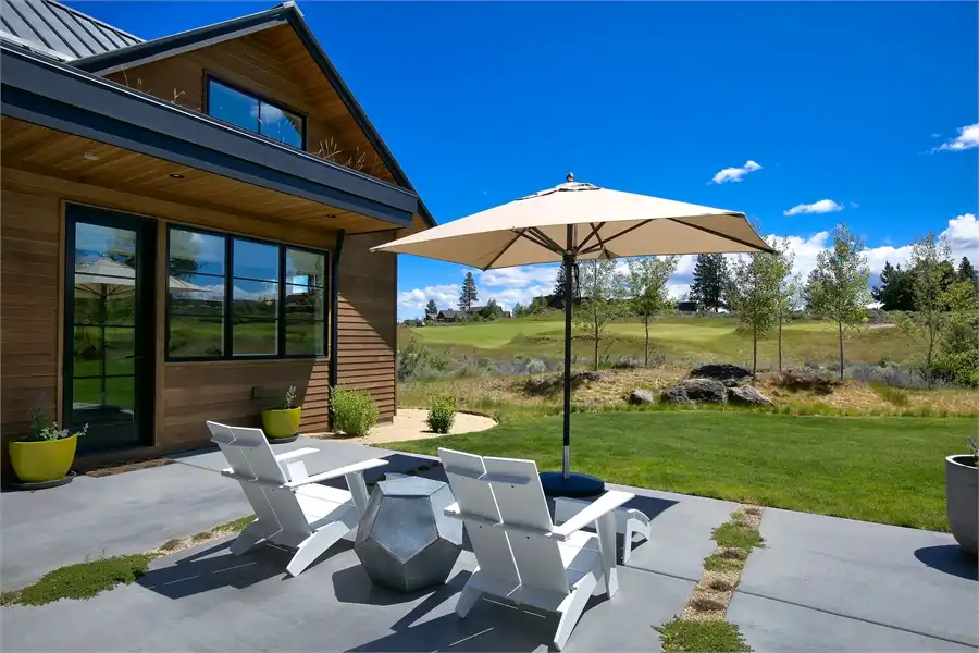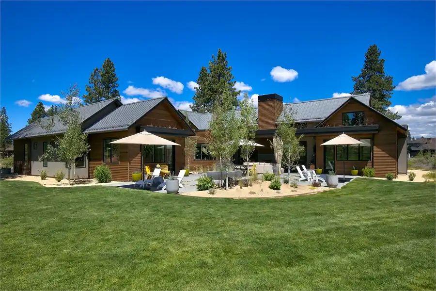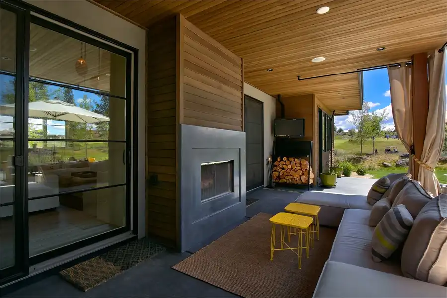 This modern three-bedroom house plan would make a great farmhouse. The many windows in the home plan provide scenic views in every direction. When guests enter into the foyer, a coat closet accepts their jackets. A nearby powder room allows them to freshen up after a long drive. The gourmet kitchen easily serves dinner in the bright dining area. Enjoy dessert and coffee in the comfortable living room. Continue your conversation outside, in the covered living area, complete with a warming fireplace. The peaceful master bedroom showcases outdoor access and a walk-in closet. The private bath boasts a garden tub. Don't overlook the home's fun bonus room and large office.