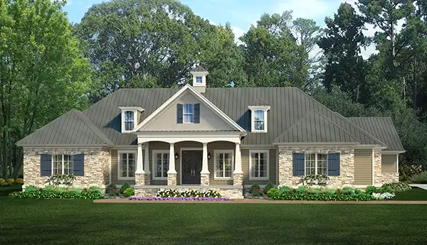 The flared steps welcome you home. An open floor plan brings the family together and displays the rear porch area perfect for outdoor entertaining. A 3-car garage and playroom connect the home with an additional covered entertaining area. Arched openings lead you to the bedroom areas. The master suite completes the right side of the home. The study features a see-thru fireplace along with an abundance of built-in cabinetry.
