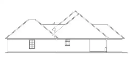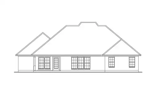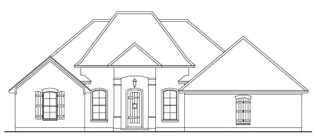 This house plan design features a large living room with a fireplace flanked by built-ins. The rear wall allows a rear view with triple windows. Arched openings display the formal dining room. For convenience the half-bath is located just inside the garage entrance. The master bedroom has privacy and features a large walk-in closet.