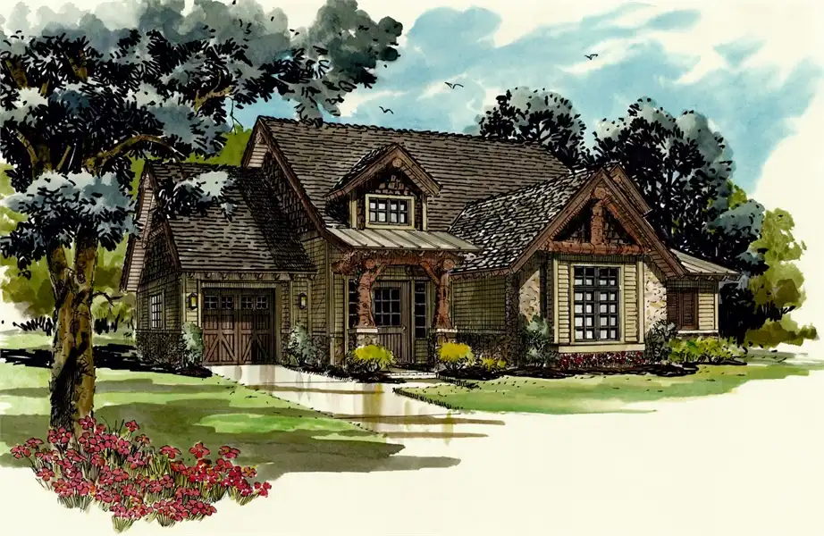 Gable rooflines and stone accents enhance the exterior of this traditional two-story house plan, with five bedrooms, 3.5 baths and a luxurious 3,060 square feet of living space, including the basement level. Relax with friends in the vaulted great room of the home plan, warmed by a corner fireplace. The wide-open kitchen incorporates a useful pantry and a snack bar for four. The versatile dining room hosts any meal with taste. Don't overlook the option of fresh-air dining on the back porch. You'll appreciate the main-floor location of the posh master bedroom, especially as the years advance. In the personal bath, you'll find a shower, dual sinks and a walk-in closet. Two bedrooms on the upper floor of this home design share a split bath. On the basement level, a fun family room steps out to a covered patio. Builders point out the large laundry room on the main floor.