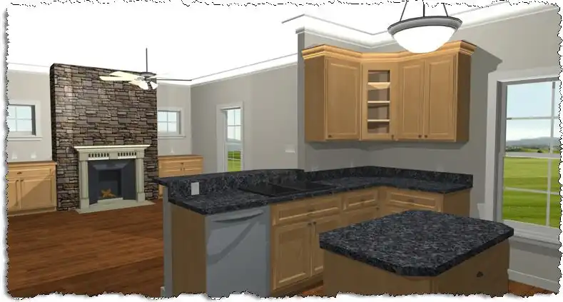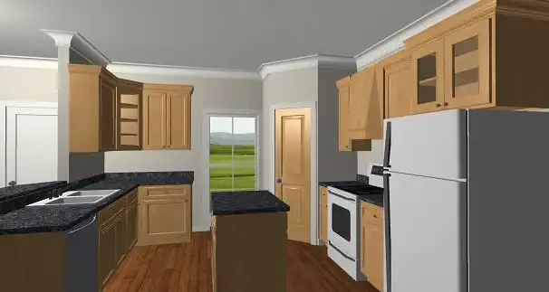 You'll be living larger than you thought 992 sq.ft. could ever do in this home. An 8' deep front porch gives extra living area - perfect for relaxing. An open great room - kitchen and dining area combo make those rooms feel huge. The gas fireplace is accented with cabinets and windows above. The kitchen is perfect for entertaining and comes complete with an island and raised snack bar. A large walk-in pantry gives extra storage. Each bedroom has large walk-in closets. The laundry room is tucked close to the bedrooms for convenience.