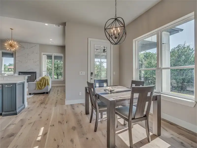 The family room provides views to the rear and right through a wraparound porch. The lanai makes a great place to sit and enjoy the pool or bbq.