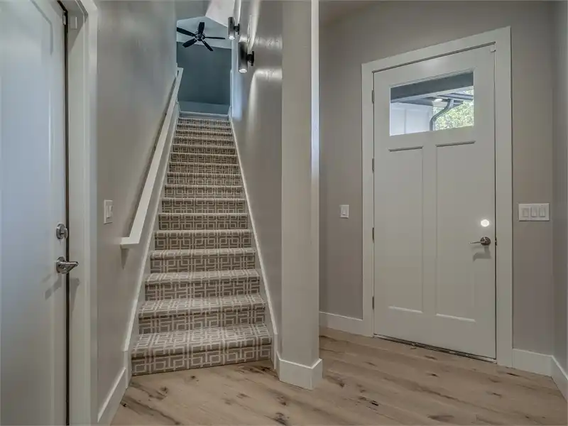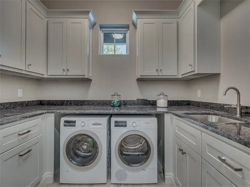 The utility room is located for maximum efficiency of the main occupants while allowing access to from other parts of the home and providing exterior access for muddy days.