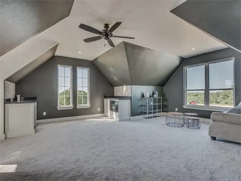 The bonus room is isolated for noise reduction and will make a great room for entertaining or even an additional bedroom suite.