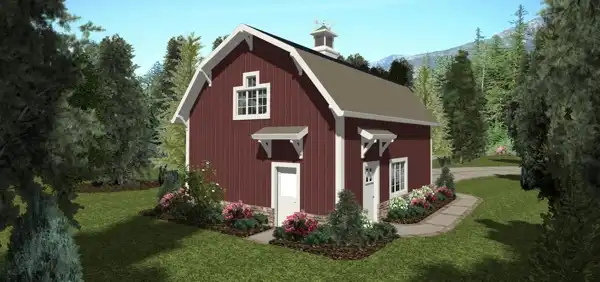 The Garage level provides storage for an array of solar & mechanical equipment, including a tankless water heater and optional laundry. The cupola provides an attractive architectural detail, but also conceals a Gale Vertical Axis Wind Generator adding to the versatile power generating capabilities of The Independence Cottage.