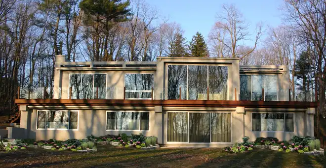 This modern design is ideal for a slope site with ocean or country views featuring large glass windows and doors on the Southwest side. The lower floor could be finish if needed for grandchildren or family members. It's a perfect home for empty nesters with grandchildren living at home.