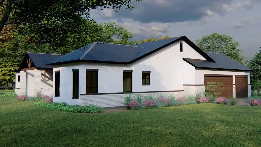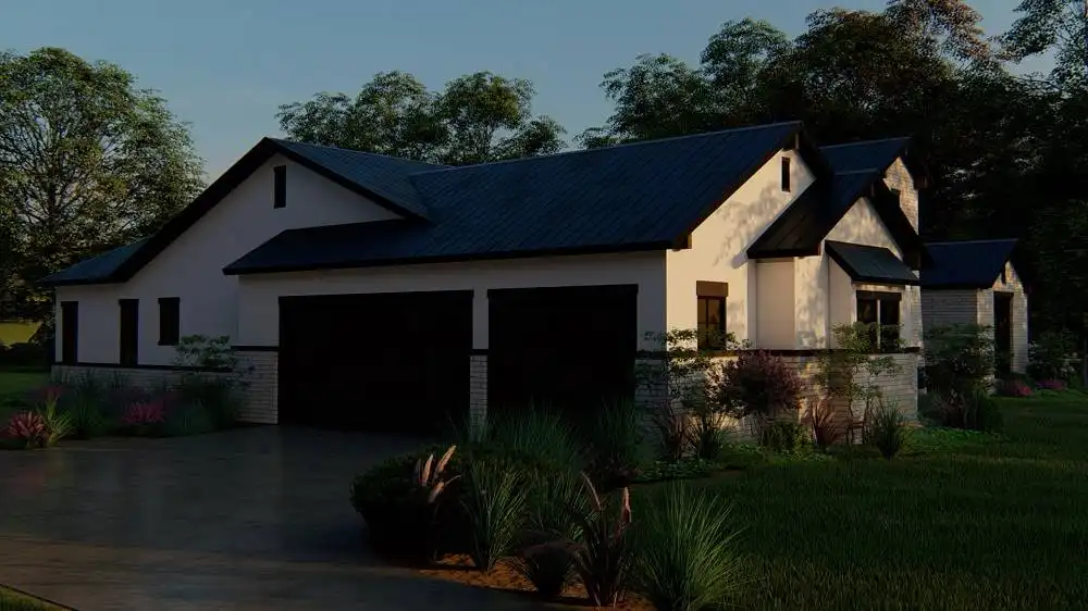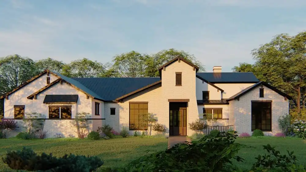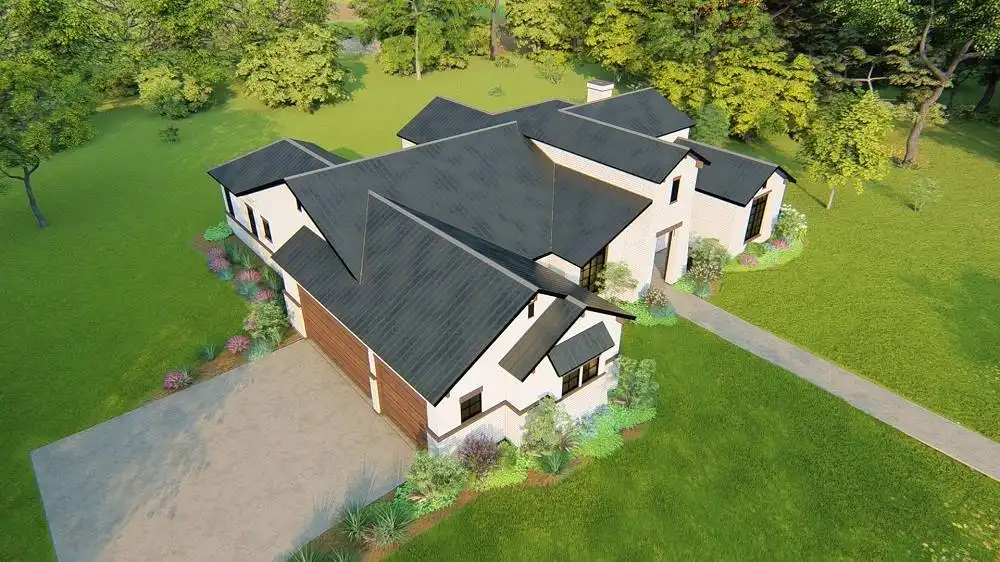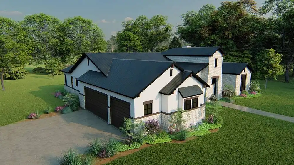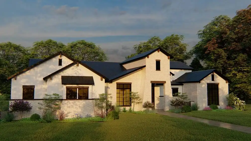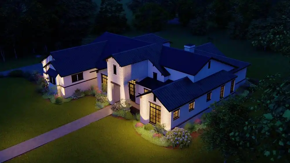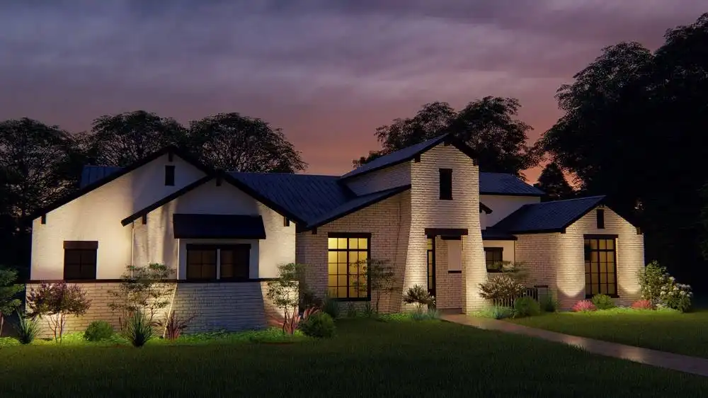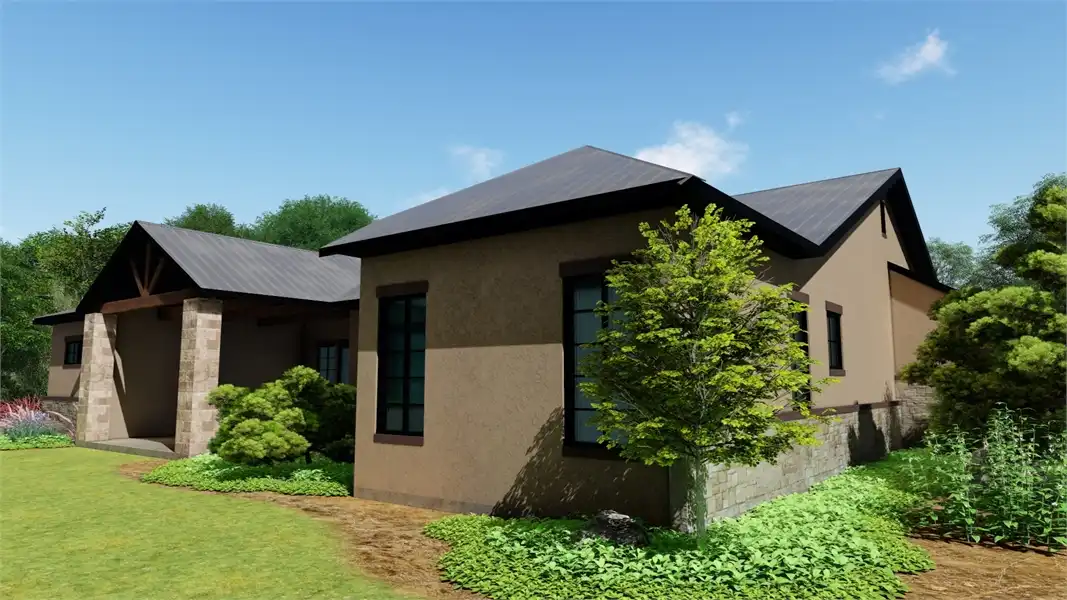 Stone accents and multiple gables enhance this European-style house plan, with a luxury 3,061 square feet of living space, including four bedrooms and three baths. Entertain guests in the sizable great room in this home plan, where a fireplace adds ambience. The island kitchen boasts a snack area for five, plus a handy pantry. Serve meals in the casual dining room, or on the vaulted porch with summer kitchen. The deluxe master suite is a peaceful haven. The personal bath flaunts an oval tub, a seated shower and two vanities. The walk-in closet is well organized for maximum efficiency. Three more bedrooms have direct bath access with walk-in closets. A secluded game room in this home design is perfect for child's play. Builders point out the versatility of the vaulted study.