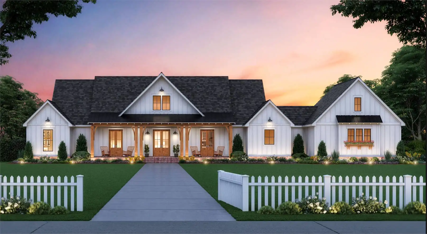 Every angle of this 2,520 square foot modern farmhouse home plan is beautiful! Starting with the large covered front porch - it ensures instant curb appeal. Within, the vaulted ceiling of the great room enhances the open floor plan, which flows between the L-shaped kitchen, dining and great room. Three bedrooms, including the master suite, allows for flexible use of rooms through the many stages of life. Speaking of the stages of life, what better spot to enjoy the day than the rear porch? It is well equipped with an outdoor kitchen and covered with a 10' ceiling, so you can enjoy the outdoors no matter the weather. This plan also features a home office or playroom - you decide how to best make use of the space! The 2-car garage includes an open storage area, ideal for your tools and gadgets.