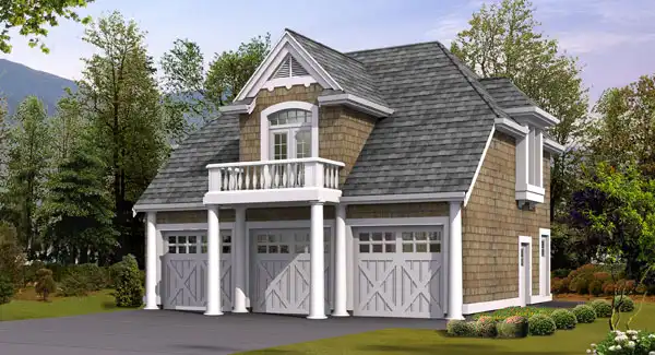 Designed for extended-family flexibility, the Cottage Grove Companion offers a large 3-car garage, topped by a delightful guesthouse plan featuring a private entry with a spacious one-bedroom apartment. Traditional roof forms and classic detailing make this plan an attractive fit in any neighborhood.