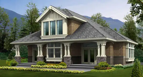 The Cedarwood was designed to provide a companion RV garage and apartment for our popular Cedar Crest house plan. This one-level accessory building contains an oversize recreational vehicle bay plus a second garage bay, along with a compact guest apartment that can also be used as a game/media center or a detached office suite.