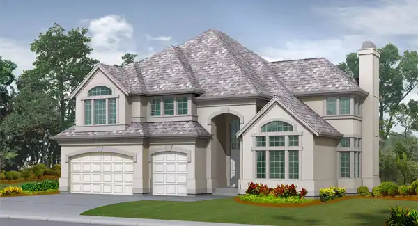 Offering exceptional luxury on a compact footprint, the Belleviews monumental entry arch creates impressive curb appeal, while the interiors enclose outstandingly crafted spaces. The grand foyer with its elegant curving staircase, join with the high-windowed double-height living room for a spectacular formal entertaining space. The private, vaulted den is conveniently accessed from the foyer, while the gracious kitchen with butlery nook and family room are positioned towards the rear, encouraging intimate family gatherings. The upper level contains a spacious master suite with sitting area and oversize walk-in closet, a guest bedroom with ensuite bath, and two childrens bedrooms served by a compartmented hall bath.