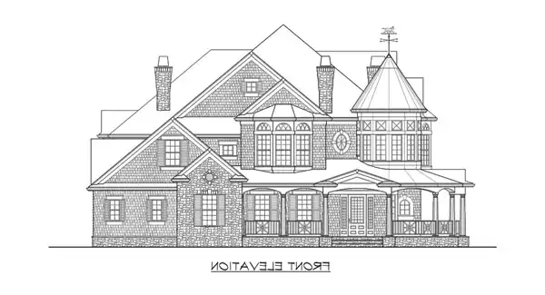 The rotundas circular stair leads to the spacious master suite retreat. A guest suite, two childrens suites sharing the turreted play loft, and a large media room with popcorn kitchen complete the upper floor.