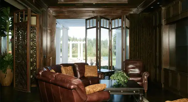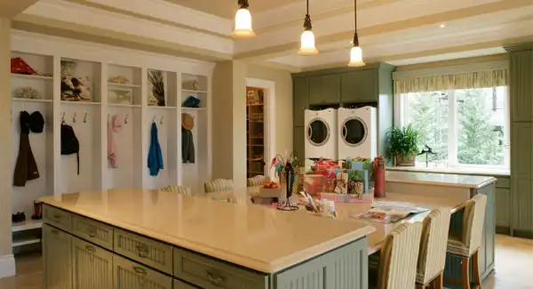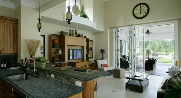Full-width folding glass doors join the informal livings areas with the pool terrace, creating a great entertainment space. The versatile cabana doubles as a guesthouse. The enormous craft room fills every home management need. The upstairs combines luxury and privacy for the owners with fun and play for the children.