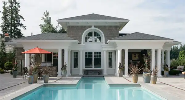 "Best of Show" winner at both the 2006 Seattle Street of Dreams and the 2007 AIBD Design Competition, the Retreat was inspired by the timeless villas of Tuscany. The shingle-style estate's five structures are joined by trellised arbors and sheltering roofs, its traditional forms complementing floor plans designed for active lifestyles.