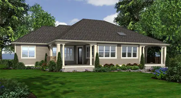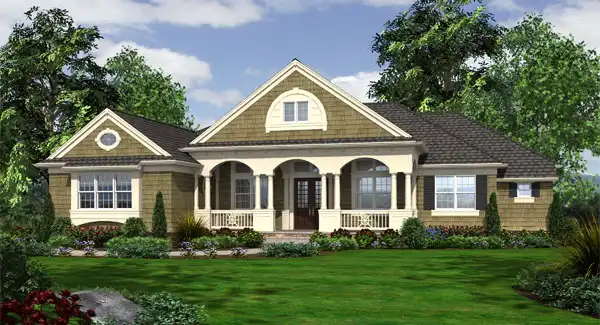 A stately residence designed with traditional and craftsman accents, the Pacificgrove combines an elegant facade with disciplined planning to create a serene and luxurious family home. The symmetrical front porch draws visitors into the columned and beamed foyer, lined with art and painting niches, adjacent to the formal dining room with its tray ceiling and butlery. A diamond-shaped, columned vestibule accesses the work-at-home den, along with a private hall to two secondary bedrooms plus Jack-and-Jill bath. The center of the house is the spacious great room, enormous island kitchen and breakfast nook, opening onto the large covered BBQ porch. Another private hall leads to the laundry/mud room and 3-car garage, and finally, the crown jewel of the home a master suite of unparalleled elegance, with a fireplace, a huge walk-in closet, deluxe five-fixture bathroom, and private covered patio with outdoor fireplace. The Pacificgrove is a truly special residence, crafted to provide timeless elegance and satisfaction for its owners.