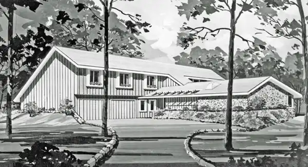 This contemporary two story home abounds with energy saving design features. A sheltered, enclosed entry, earth berms and an atrium to capture and store the sun are but some of the more unusual features. The atrium features a trellis with appropriate angles to allow winter sun but exclude it in summer. The design features a first floor master suite and a volume ceiling in the family room.