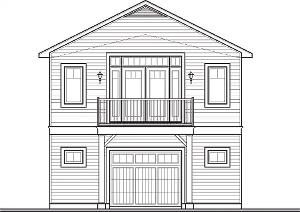 This cottage style plan is a great option for the newlywed couple or those seeking to build a smart and practical home while saving some money. Packed within the walls of this home is 1,015 square feet, brimming with the charm and appeal that you would expect from a traditional country cottage. One bedroom and 1.5 bathrooms allows for privacy but usability in entertaining guests and having visitors. This 2-story home begins with a bottom level garage and work space, great for the inner DIY’ers and hobbyists. Secondary garage access from the backyard allows for easy and functional usage of the space without having to move cars out. A large closet by the stairs is great for a coat closet or additional storage. The second story houses the living spaces and provides wonderful natural light, thanks to the large windows that are found on virtually every wall. Vaulted ceilings work with the natural light to give the home an even more open feeling about it. A powder room directly off of the stairs is great for guests and is easily accessible to the open layout. A large kitchen and dining room open on to the family room, as well as providing dual access to the 144 square foot deck, great for outdoor living and entertaining. A spacious master suite finishes this home’s floor plan, incorporating things such as dual closets and a large soaking tub. This home’s size doesn’t stop it from offering you the luxury and relaxation that you deserve.