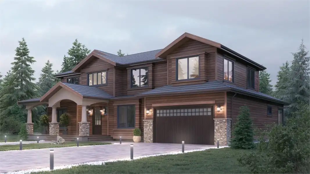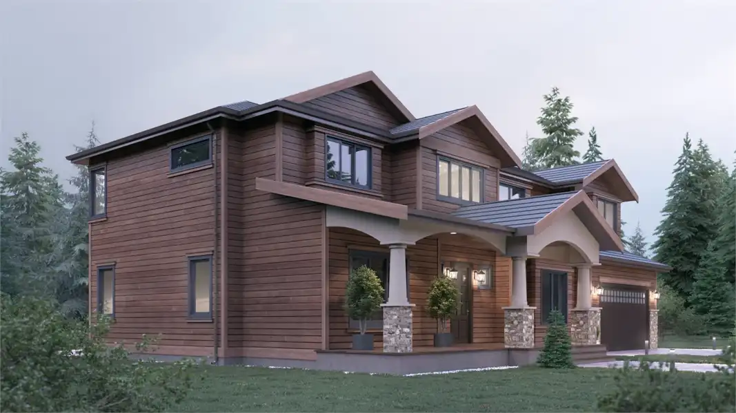 A wonderfully refreshing take on a family-ready house plan, this special design is one that has something for everyone. Featuring the rustic styles of Craftsman cabins, coupled with the sleek features of a modern home, the 3,501 square foot plan is as unique as it is practical. And with 5 bedrooms and 3.5 bathrooms, there is space for even the largest of families! Explore the potential that the common areas such as the massive great room and the picturesque kitchen and dining rooms offer. And brainstorm how you'd best use that flex room off the living area. Whether it's a home gym, office, playroom or a bedroom, this area has tons of potential too! While downstairs finds a guest suite, upstairs offers the auxiliary bedrooms along with the master bed and bath. No matter where you go, relaxation is only mere steps away.