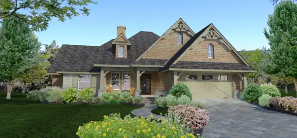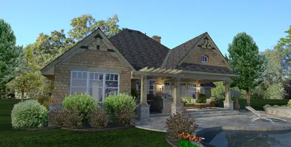 This flexible plan offers an open plan for a relaxed lifestyle. The study can also be used as a 4th bedroom as shown and can even be converted to a formal dining if a single dining area is not adequate. The master suite boasts his and hers WIC's, separate vanities and a separate shower. The family room contains large windows and a corner view making great use of a view lot. These views flow out to the covered outdoor areas making a great place to bbq and enjoy the breeze. The kitchen provides ample workspace and a stone arch over the commercial range as well as a walk in pantry and built-in refrigerator.