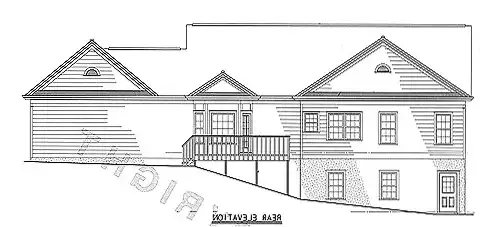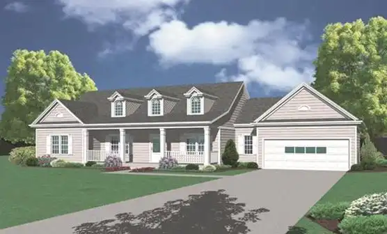 Multiple gable roof lines, a country front porch and bay window harmonize well with the elegantly appointed interior of this home. The visually open plan belies its modest dimensions. The interior offers a unique practical floor plan layout. Guests enter a foyer that directs them to the large living room, shown with a fireplace. Stairs up to a bonus room over the garage open from a corner of the room. This room could serve a multitude of uses. Strategically located adjacent to this area is the huge kitchen breakfast room which is organized around a cook top island. An expanse of glass brightens the entire room. Double garage access is convenient, along with a storage closet or pantry under the stairs up to the bonus room. A separate laundry room is indicated, being convenient to the kitchen and the master bedroom. Stairs down to the basement are indicated nearby. A cozy retreat, the master bedroom is shown with a tray ceiling, which further enhances the size of the room. A large walk-in closet is provided for the homeowners. The garden bath includes twin sinks; corner garden tub and separate corner shower as well as linen storage. The family bedrooms are from a private hall off of the great room. Each bedroom includes a walk-in closet and has access to a hall bath.