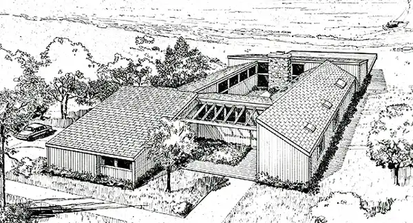 This contemporary ranch features an interior atrium, which affords light to many rooms; it also creates a beautiful place for a tranquil garden within your home. The rear living/dining room, which serves as a fabulous great room is bathed in daylight from the rear deck to the atrium. Virtually every room in the home has a vaulted ceiling following the contemporary rooflines. The master is separated from the two other bedrooms for privacy. Note the expansive garage, which provides for great workshop space as well as the storage loft over the garage.