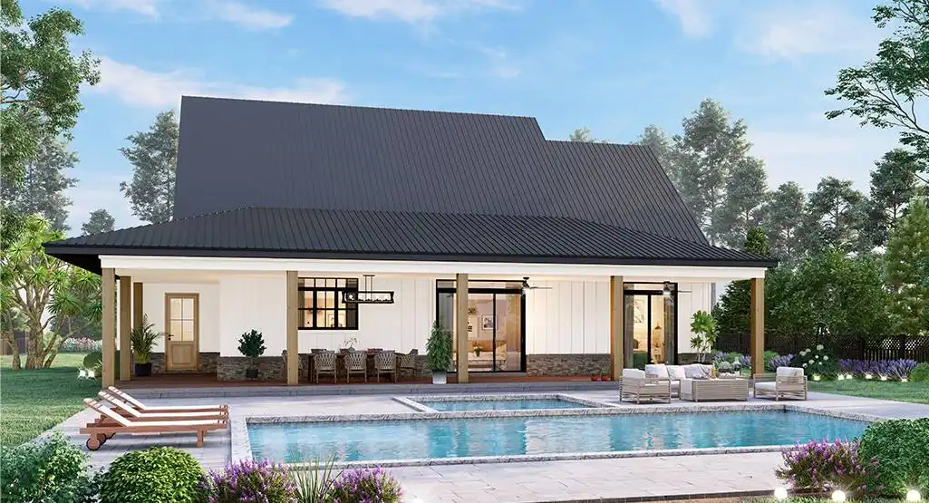 House Plan 3338 comes in at 2,017 square feet with three bedrooms and two-and-a-half bathrooms, so it's just the right size for the average family! This transitional design merges rustic elements with chic and simple style, so it can fit in anywhere, too. The two-story layout places the open living spaces and master suite on the main level, all under a cathedral ceiling. The utility room and powder room are also downstairs. Upstairs, you'll find the two secondary bedrooms and a shared hall bath, but that's not all! You can finish the bonus and/or the bunk room to increase usable space. If you need a home that covers the basics beautifully and has some built-in flexibility, look no further than House Plan 3338!
