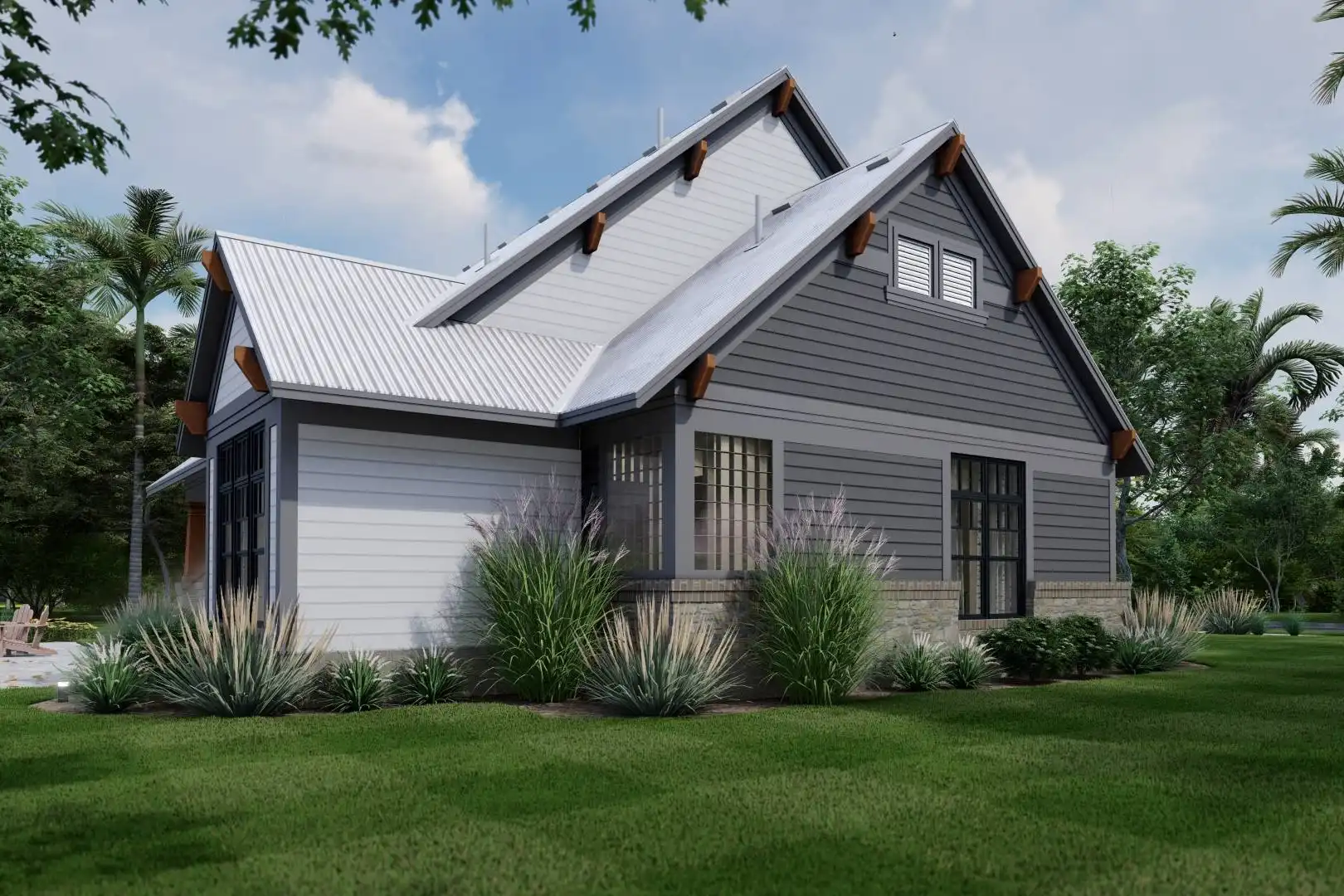 With its modest size, bungalow exterior, and bright yet cozy layout, House Plan 3339 is here to offer a stylish and comfortable living experience for a budget! It has 1,657 square feet with three bedrooms and two bathrooms, and the shared spaces are uniquely defined for a traditional feel. The family room welcomes you in up front, complete with a fireplace and vaulted ceiling. Moving back through the house, the dining area and island kitchen are surrounded by windows for plenty of natural light. The master suite is located in the back corner and has an awesome five-piece bath. The two secondary bedrooms and Jack-and-Jill bathroom sit in front, in a hallway off the family room, for a split-bedroom arrangement. If this isn't enough space for you, just head up the stairs and you'll find a large bonus to serve whatever additional need you may have!