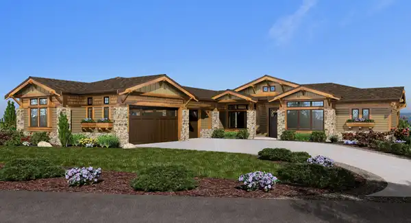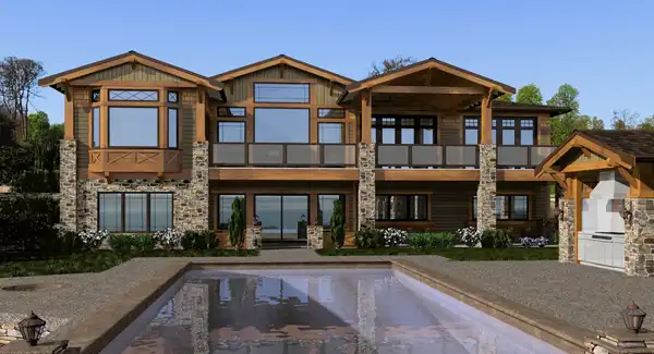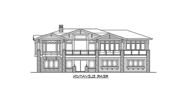 This luxury Craftsman two-story house plan is actually a daylight rambler, with a finished lower level, and four bedrooms, 3.5 baths and 6,475 square feet of living space. Enjoy a few laughs with friends in front of the fireplace in the spacious great room of this home plan. The island kitchen flows into the versatile dining area. Note the nearby pantry. When you'd like some fresh air, enjoy meals on the sprawling rear deck. The bayed master bedroom offers deck access. Dual vanities flank a garden tub in the fabulous master bath, which also showcases a separate shower. Don't overlook the linen closet and the huge walk-in closet. You'll appreciate the secluded den and the amazing life management center in this home design. On the basement level, a guest bedroom has its own bath and walk-in closets. Two secondary bedrooms share a compartmentalized bath. A sizable recreation room opens to a covered patio. Builders point out the exercise room, plus the man cave with kitchenette.