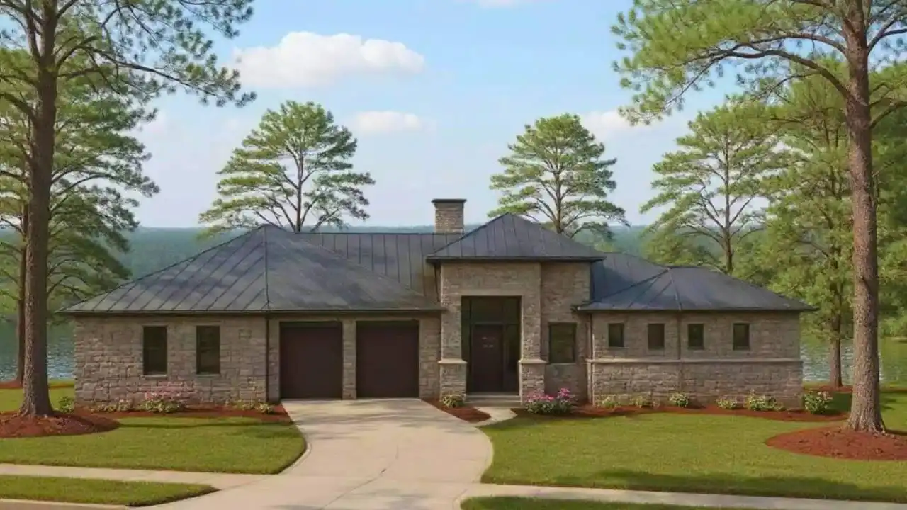 House Plan 3397 emphasizes relaxed, open living in a sleek modern ranch design. The great room’s vaulted ceiling and fireplace create a dramatic gathering space that flows into the dining room and kitchen, making the home perfect for hosting or daily living. The primary bedroom is conveniently located on the main floor and features a walk-in closet and luxury bath with a soaking tub and separate shower. Bedrooms 2 and 3 are located across the home, supporting a true split-bedroom layout for privacy. A craft room adds useful flex space for office, studio, or storage needs, while the bonus room offers even more versatility. Outdoor living is prioritized with a deep rear porch designed for dining, lounging, and enjoying natural views. The design is completed with a front-entry 2-car garage and a smooth single-story flow ideal for any stage of life.