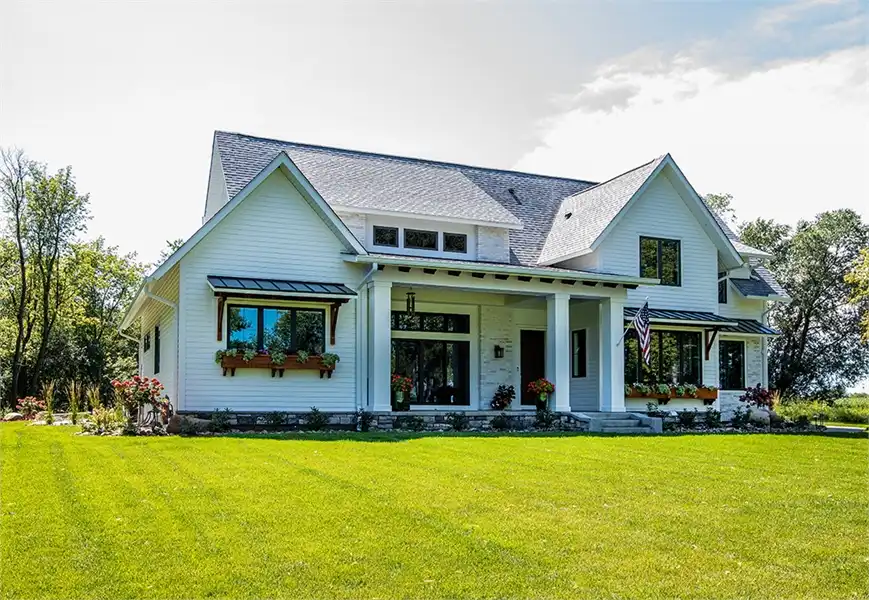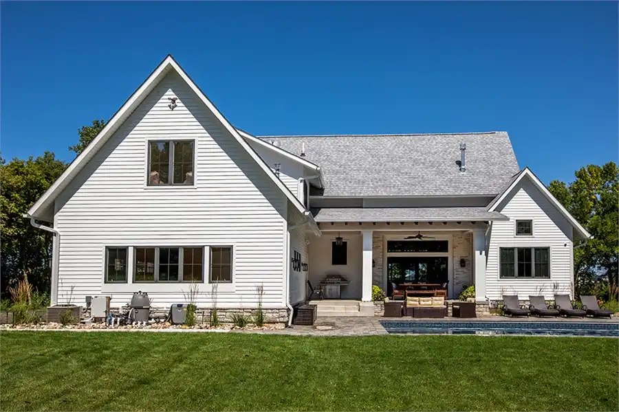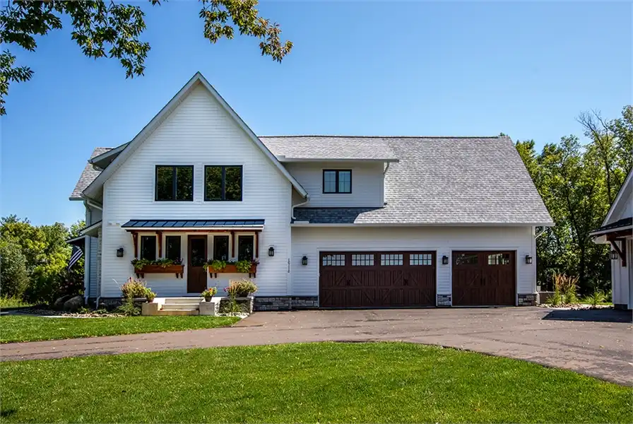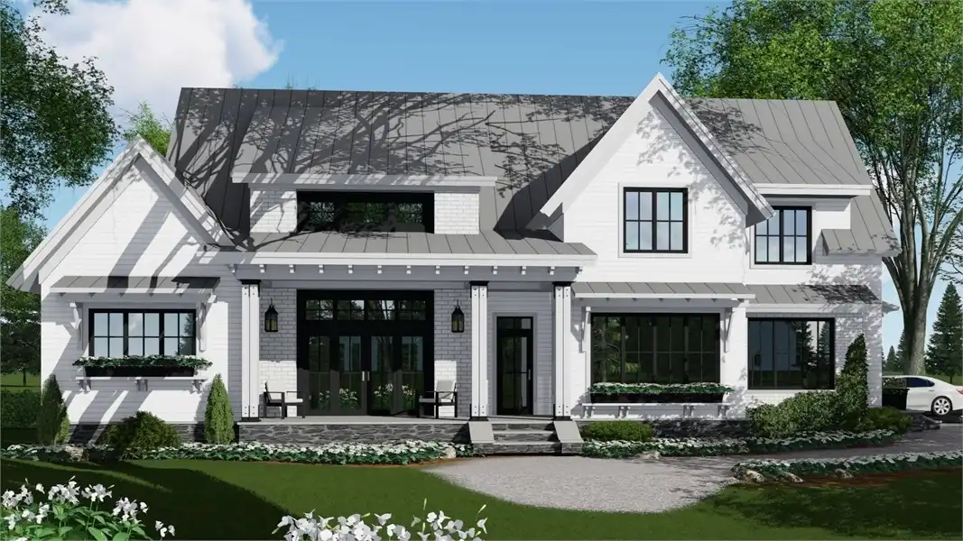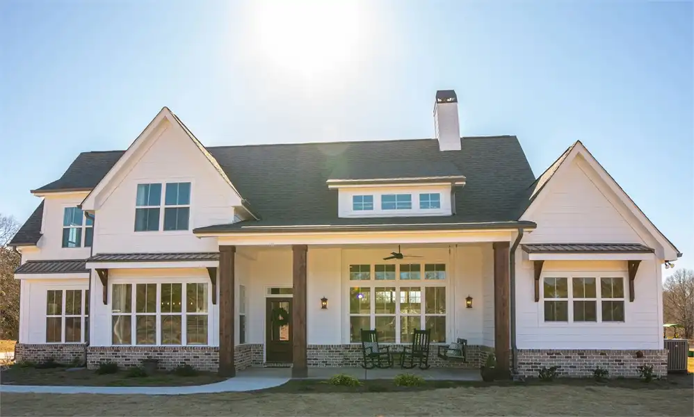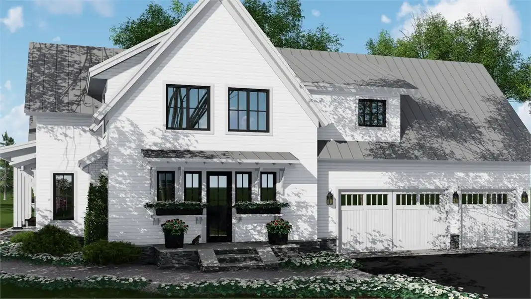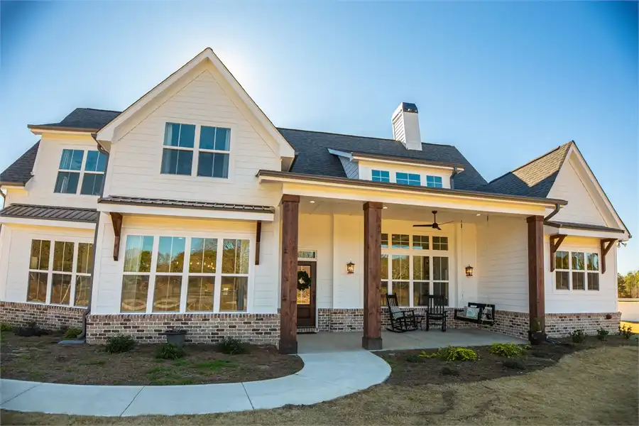 This country two-story design showcases an attractive façade with a farmhouse feel. The interior is perfect for entertaining, with the gourmet kitchen flowing into the bright dining area and the sizable great room. A cozy office will tempt you to work from home, at least one day per week. Note the breezy outdoor spaces on the front and rear of the home. The vaulted master suite will certainly not disappoint, with its garden tub and sit-down shower. The kids will love their cozy loft and three bedrooms on the second floor. The bonus room would make a nice playroom.