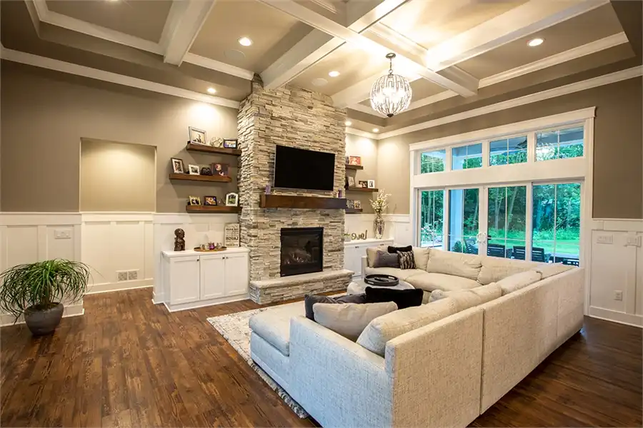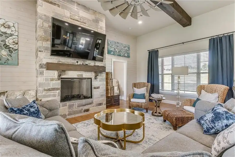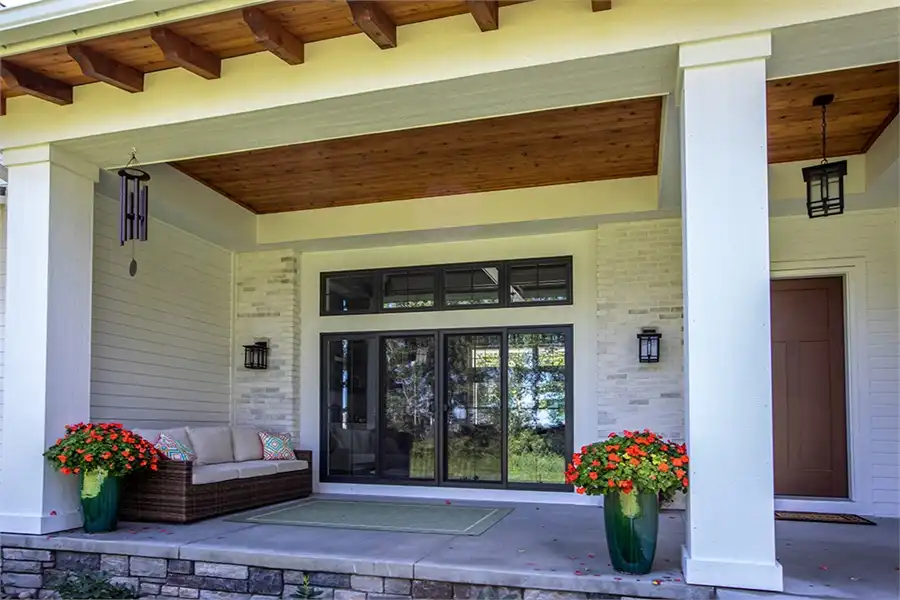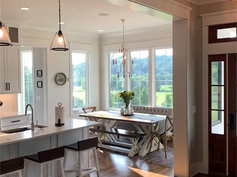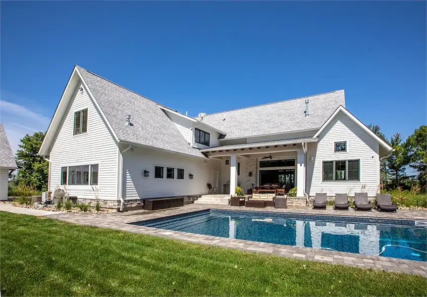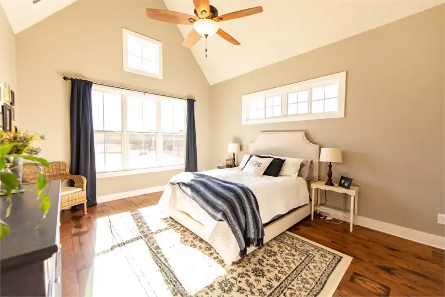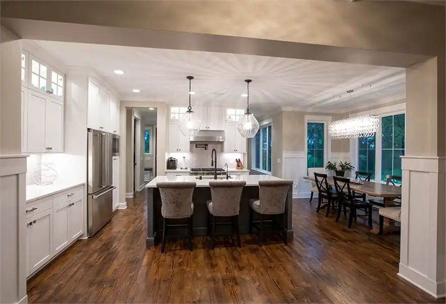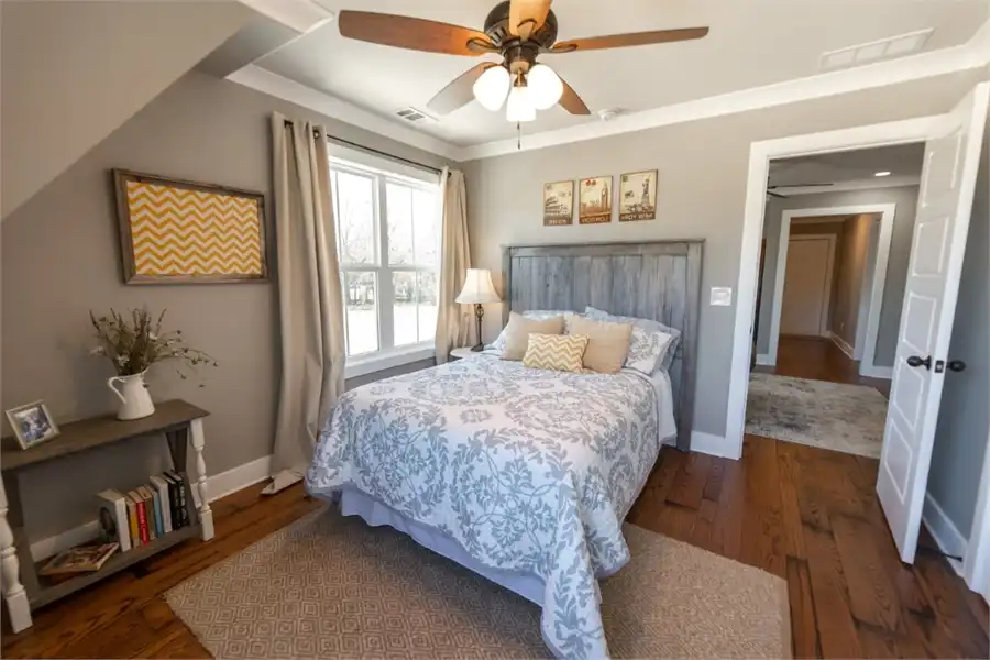 This country two-story design showcases an attractive façade with a farmhouse feel. The interior is perfect for entertaining, with the gourmet kitchen flowing into the bright dining area and the sizable great room. A cozy office will tempt you to work from home, at least one day per week. Note the breezy outdoor spaces on the front and rear of the home. The vaulted master suite will certainly not disappoint, with its garden tub and sit-down shower. The kids will love their cozy loft and three bedrooms on the second floor. The bonus room would make a nice playroom.
