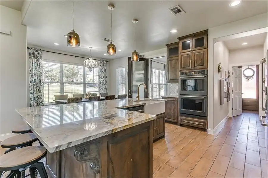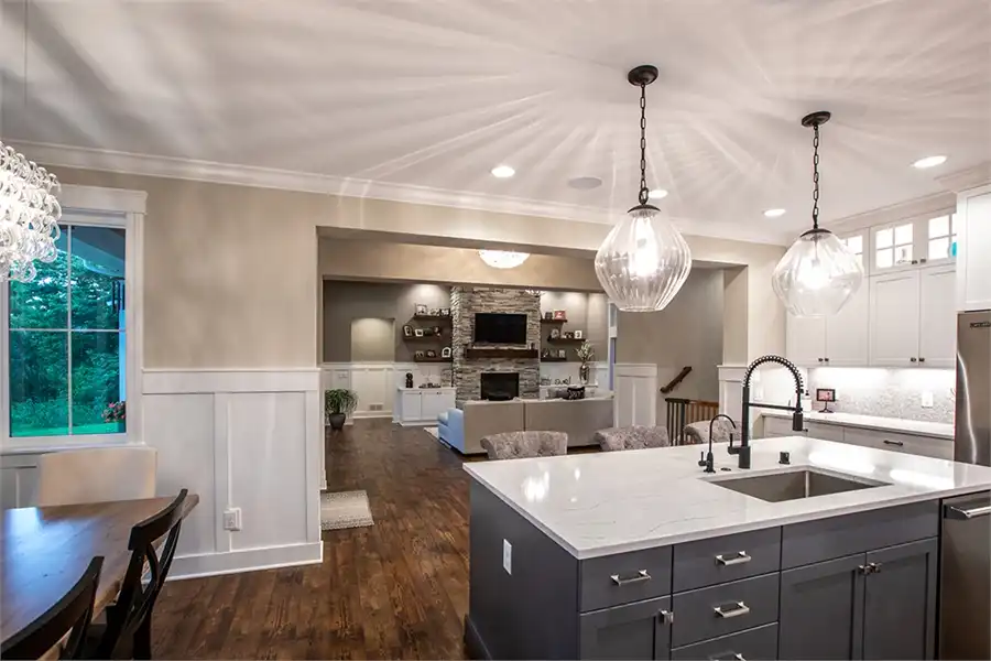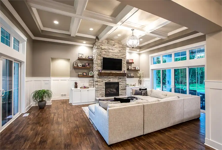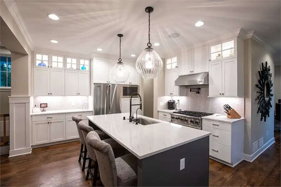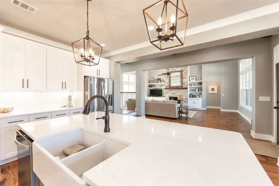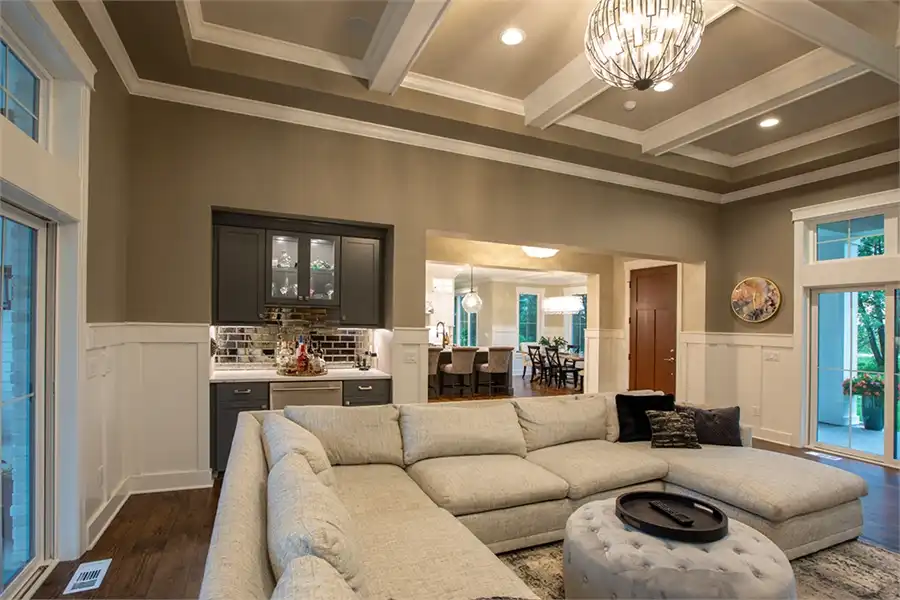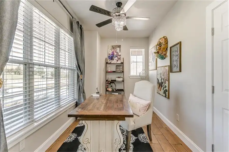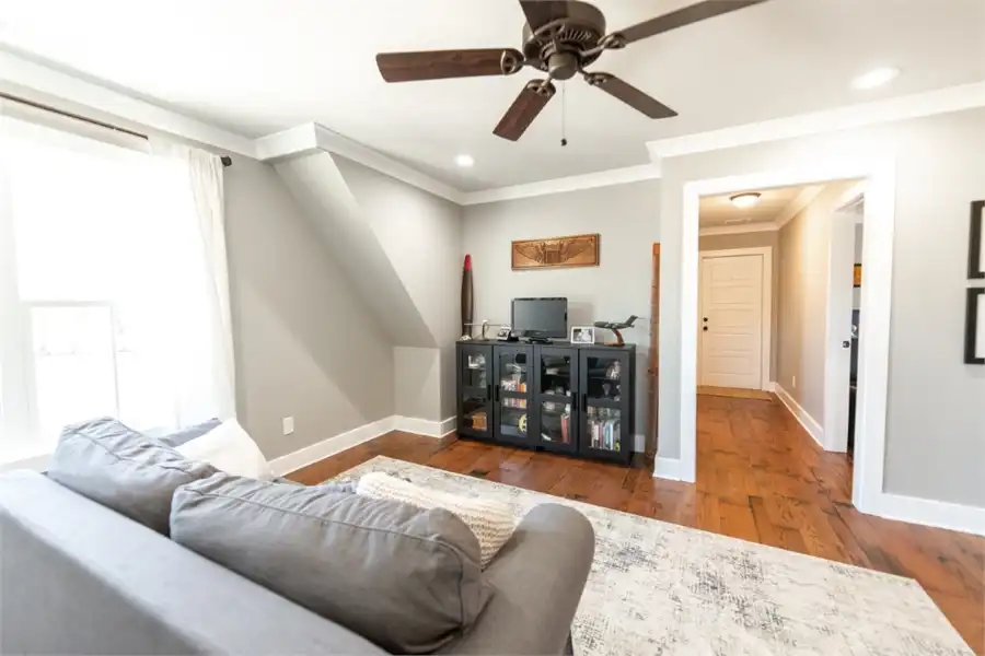 This country two-story design showcases an attractive façade with a farmhouse feel. The interior is perfect for entertaining, with the gourmet kitchen flowing into the bright dining area and the sizable great room. A cozy office will tempt you to work from home, at least one day per week. Note the breezy outdoor spaces on the front and rear of the home. The vaulted master suite will certainly not disappoint, with its garden tub and sit-down shower. The kids will love their cozy loft and three bedrooms on the second floor. The bonus room would make a nice playroom.