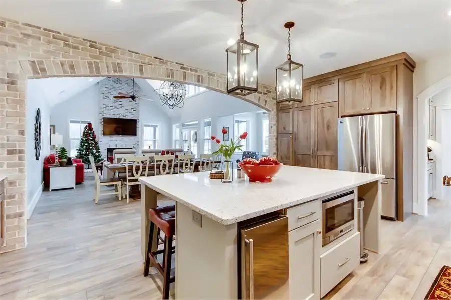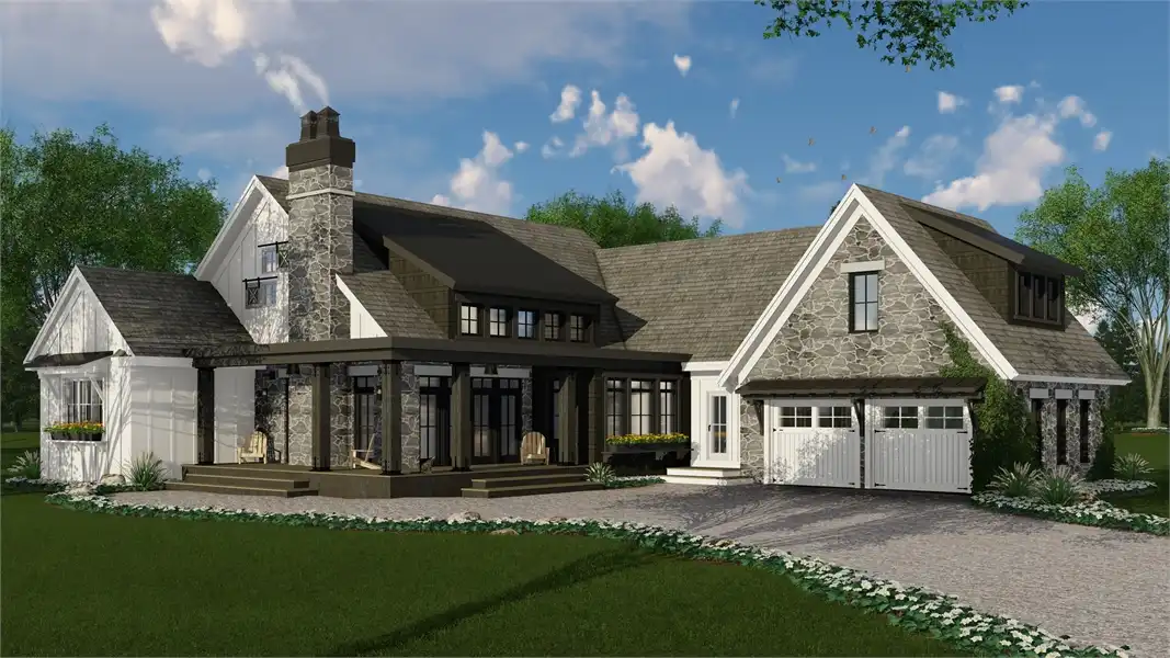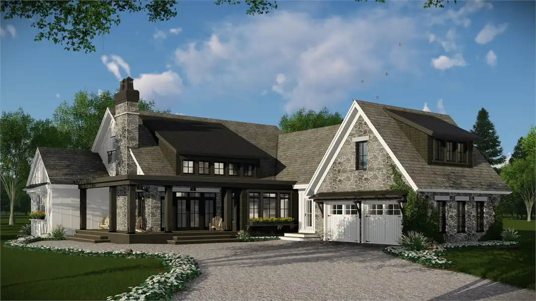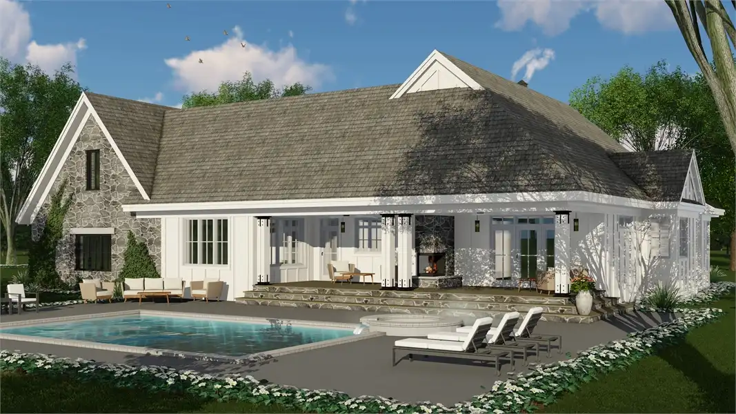 A wraparound porch welcomes visitors to this one-story cottage design. Gather friends for good conversation and a few laughs in the vaulted great room, warmed by a crackling fire. The gourmet kitchen incorporates island snack space for five. Curl up in the den with your favorite novel for a few hours. A rear porch with a fireplace is another relaxing area. The well-appointed master suite boasts comfort and elegance. A secluded bonus room can be anything you wish; how about an exercise room?