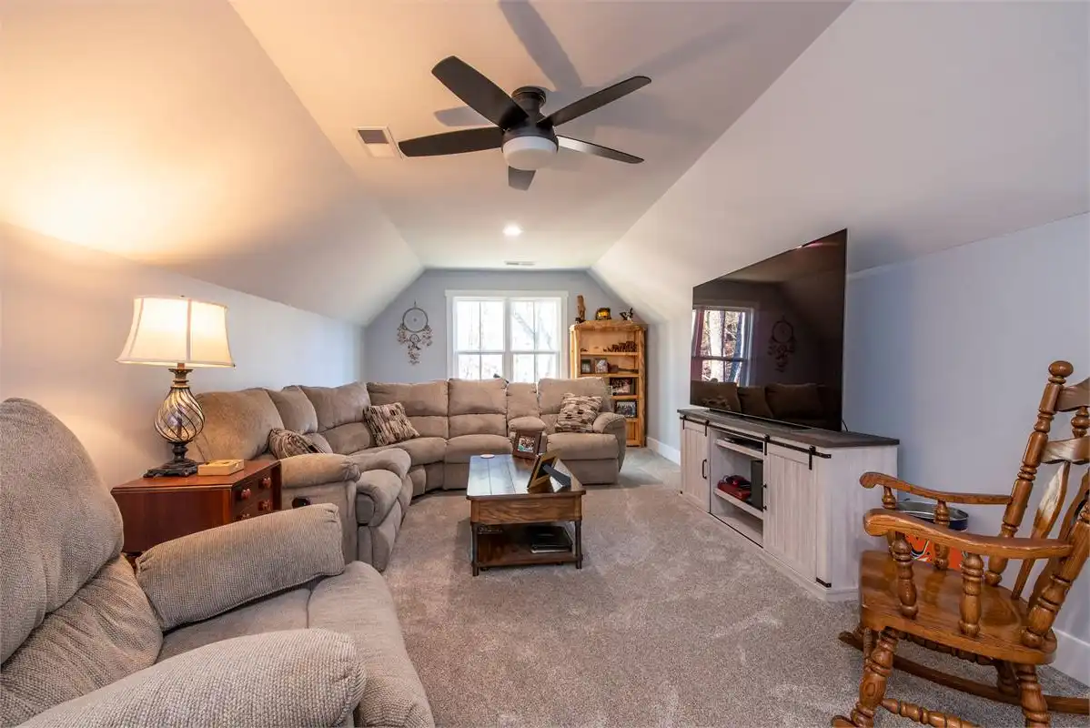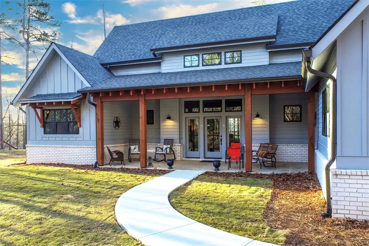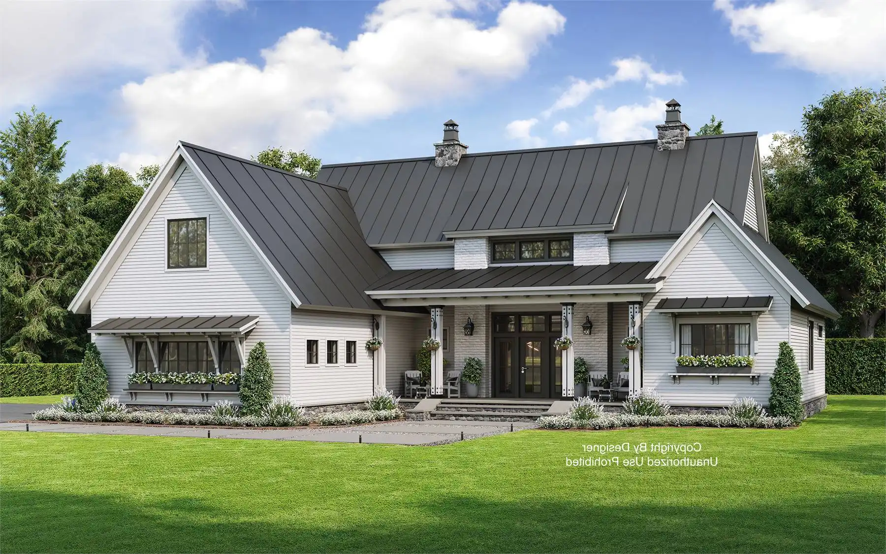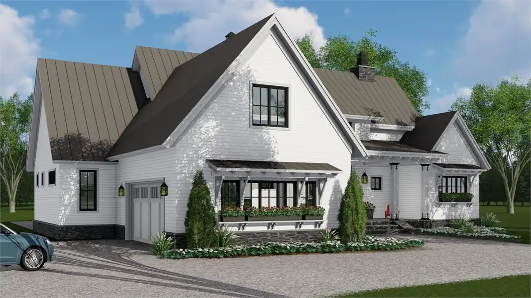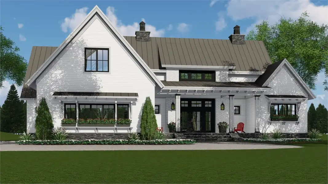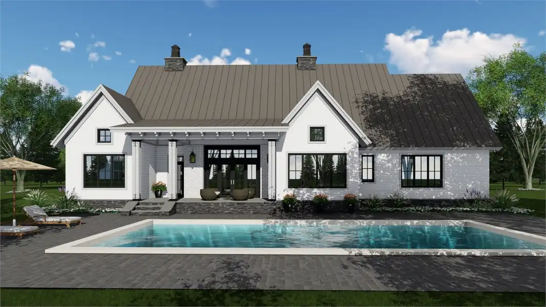 This three-bedroom cottage design boasts an interesting roofline and a welcoming front porch. Inside, a fireplace enhances the central great room, where friends will enjoy good conversation. A cathedral ceiling presides over the open kitchen and the bright dining area. A barn door conceals a handy pantry. A second barn door hides a peaceful study, where you can curl up with a best-selling novel. At day's end, soak away your stress in the master suite's garden tub. Note the unique desk area near the children's bedrooms. A sizable bonus room may be used however you wish.