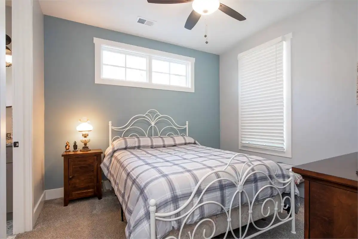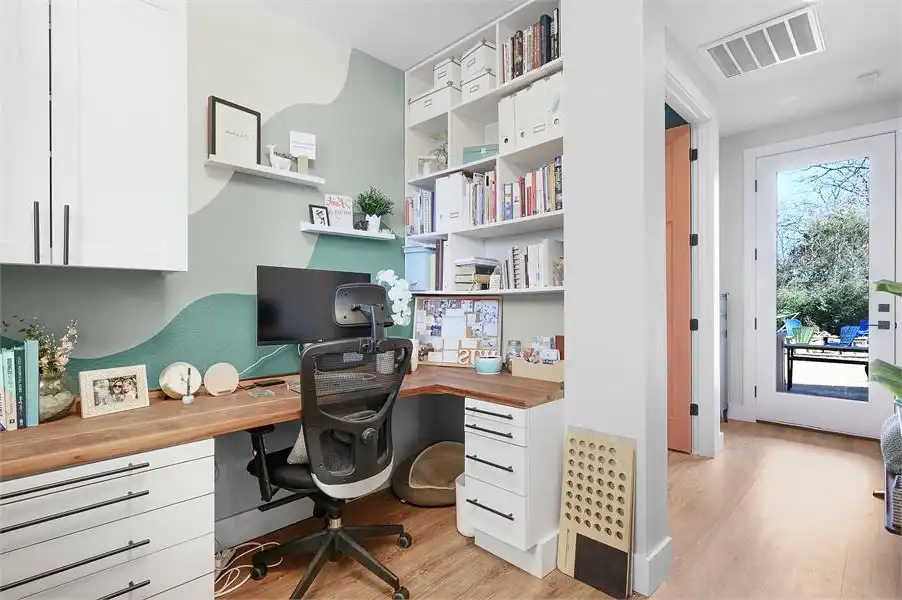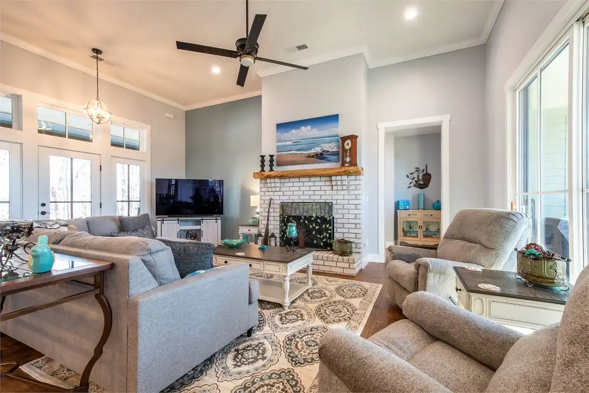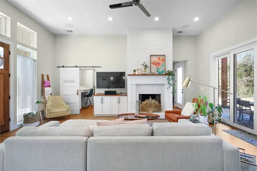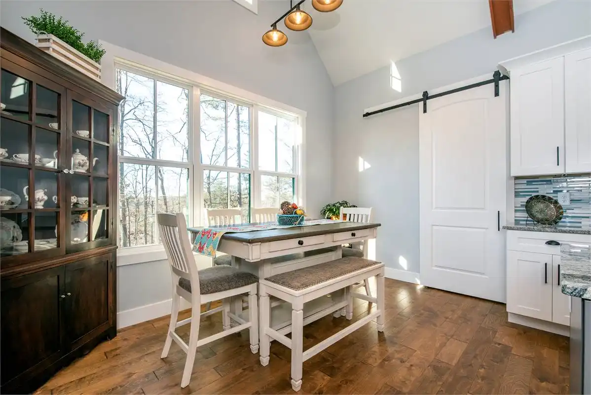 This three-bedroom cottage design boasts an interesting roofline and a welcoming front porch. Inside, a fireplace enhances the central great room, where friends will enjoy good conversation. A cathedral ceiling presides over the open kitchen and the bright dining area. A barn door conceals a handy pantry. A second barn door hides a peaceful study, where you can curl up with a best-selling novel. At day's end, soak away your stress in the master suite's garden tub. Note the unique desk area near the children's bedrooms. A sizable bonus room may be used however you wish.