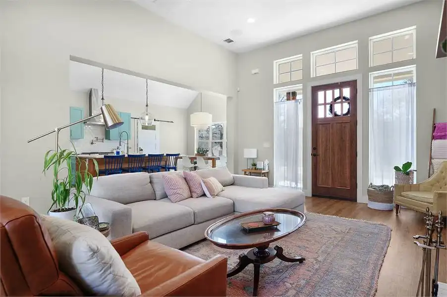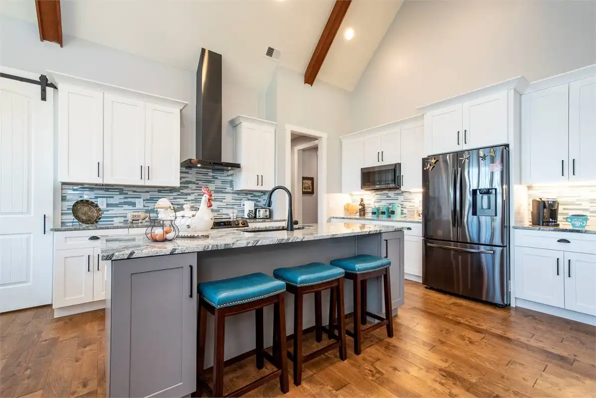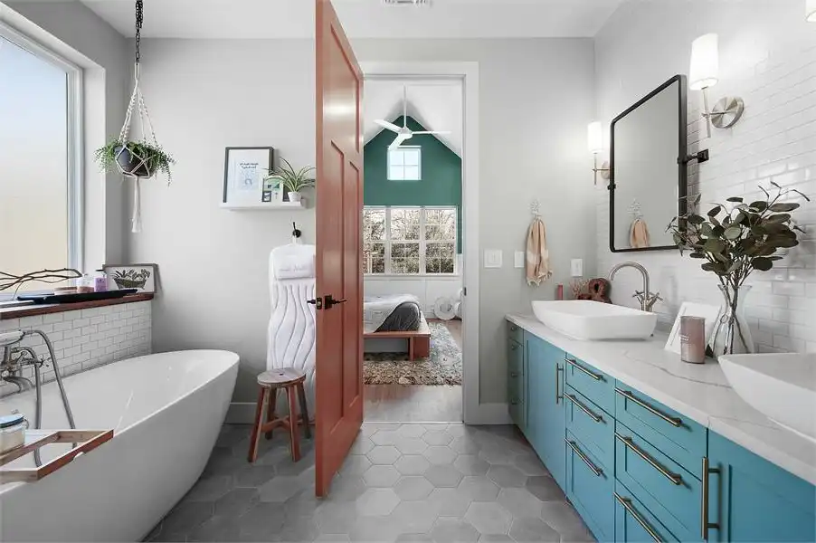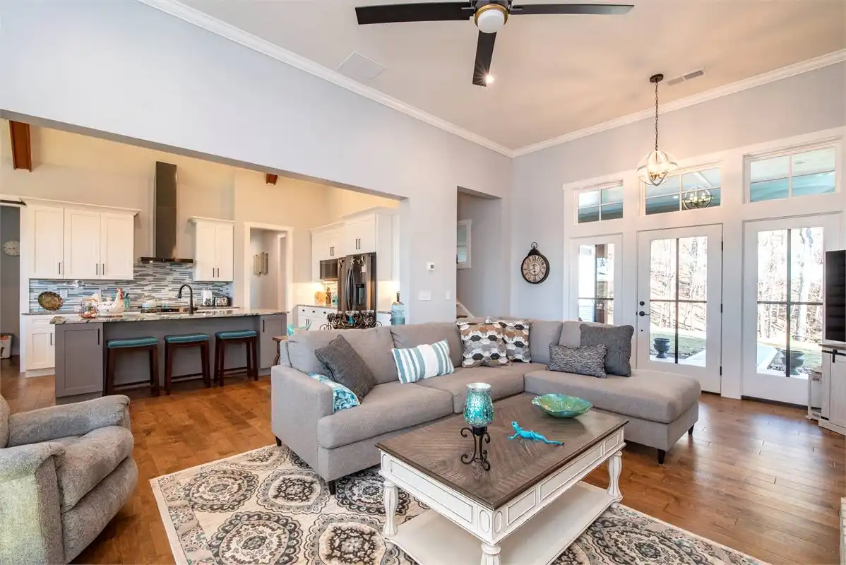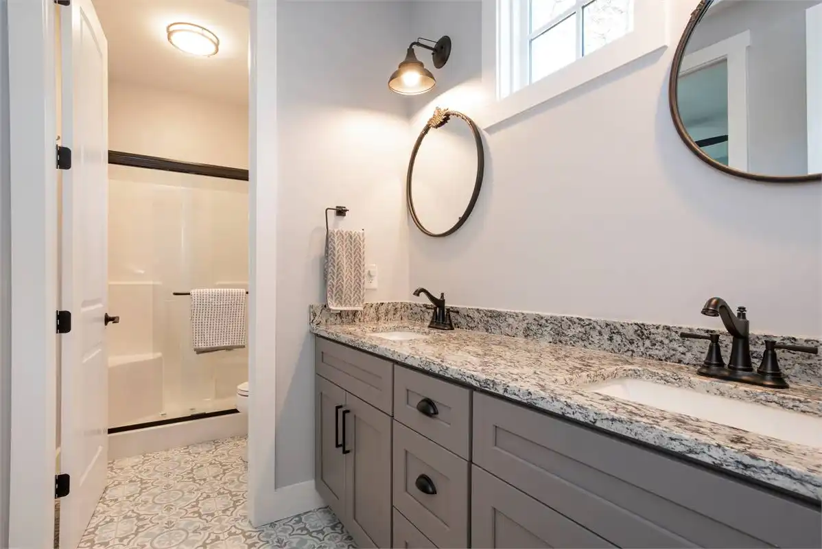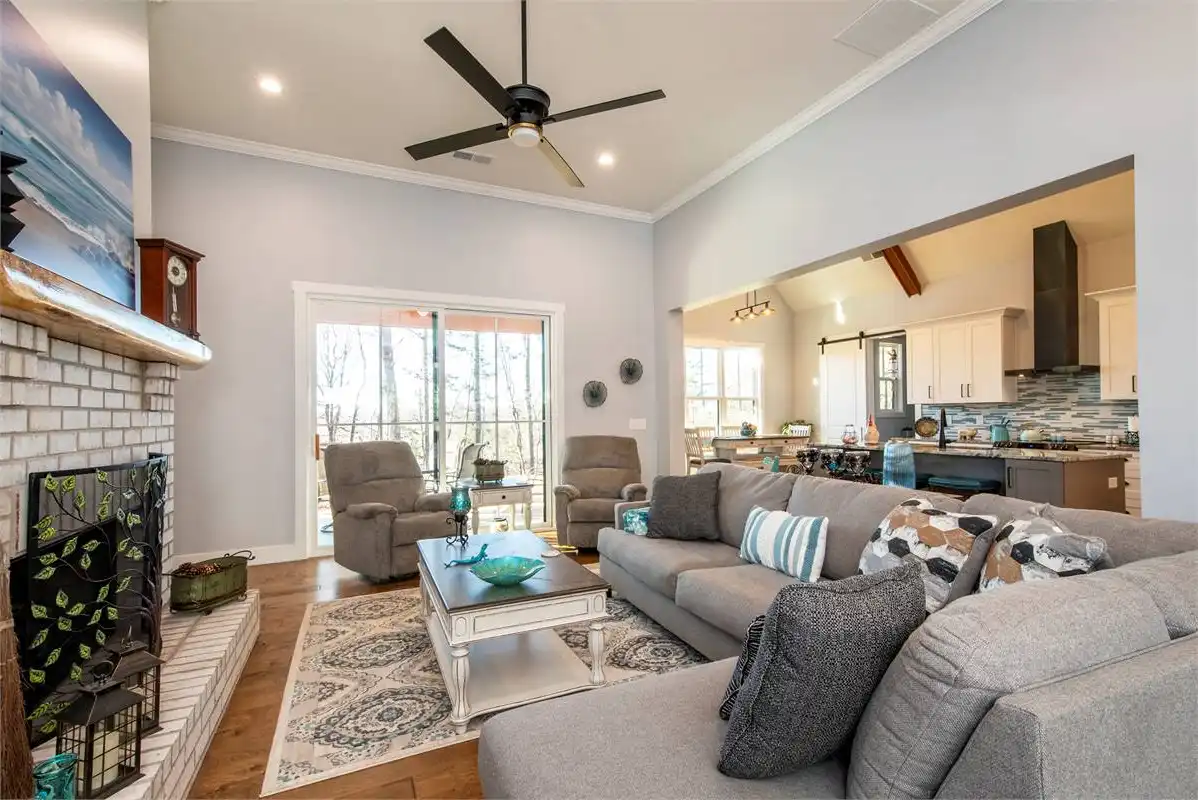 This three-bedroom cottage design boasts an interesting roofline and a welcoming front porch. Inside, a fireplace enhances the central great room, where friends will enjoy good conversation. A cathedral ceiling presides over the open kitchen and the bright dining area. A barn door conceals a handy pantry. A second barn door hides a peaceful study, where you can curl up with a best-selling novel. At day's end, soak away your stress in the master suite's garden tub. Note the unique desk area near the children's bedrooms. A sizable bonus room may be used however you wish.