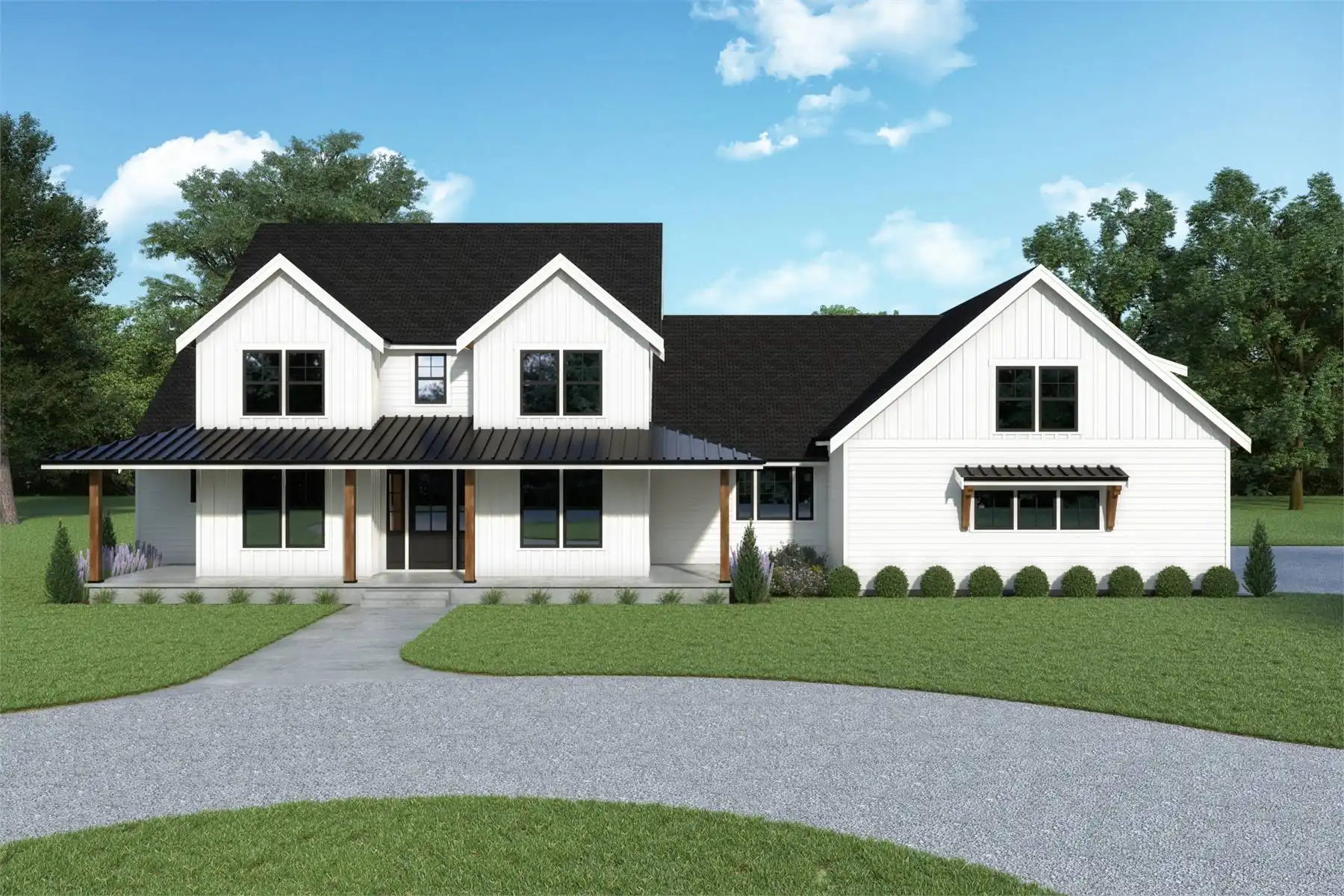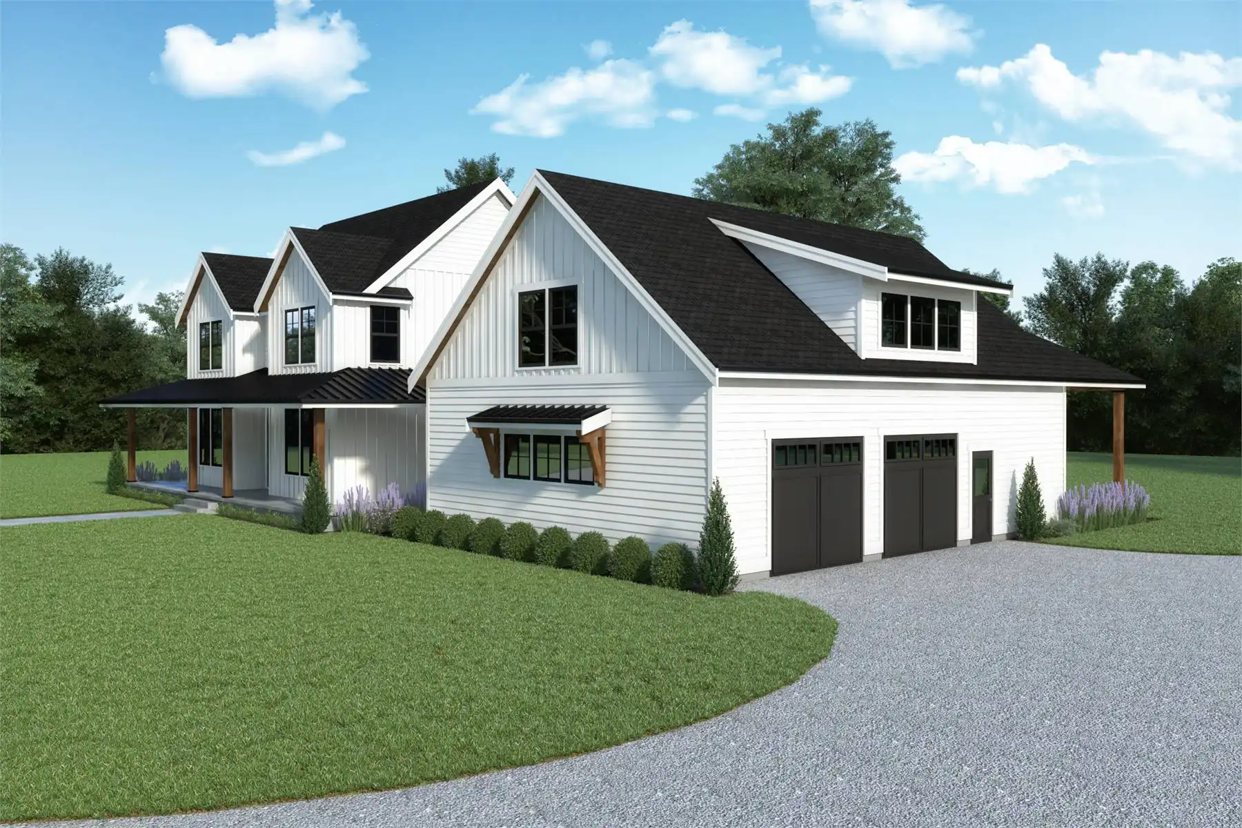 Looking for a spacious two-story farmhouse for your family? See what House Plan 3423 has to offer! This design has classic curb appeal with gables and a side-entry garage. Inside, you'll enjoy open-concept living with an L-shaped island kitchen and a vaulted great room. The main level also includes the five-piece primary suite, a den, a playroom, and a mudroom that connects to the laundry and a full bath. Don't overlook the spacious back porch, either! The final two bedrooms are located upstairs along with a divided four-piece hall bath. If that's not enough, there's also a bonus room and a storage room over the garage, separate from where the secondary bedrooms are, that you could turn into whatever you may need!