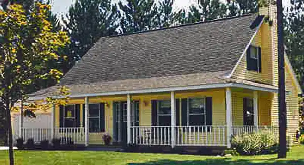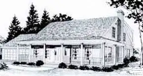 The charm and appeal of country styling is evident in this simply designed two-story with wrap-around front porch. A center hall flanks the staircase. A beautiful and spacious Great Room, with masonry fireplace and wrap-around windows, is to the left, and a nice-sized den which could serve as a library, office, guest room or fourth bedroom is to the right. The kitchen is a lovely space with two separate areas, an efficient work area and a distinct bay windowed dining area with center door leading to the rear yard. The second floor includes a master bedroom with full private bath and two large closets, plus two secondary bedrooms.