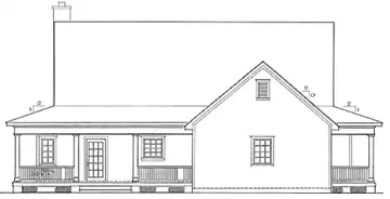 The wrap around porch is responsible for the popularity of this design. Windows flank each side of the great room fireplace with built-in cabinets below. The upper floor includes two large bedrooms and a shared bath.