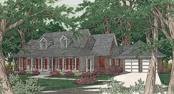 Large porches and a spacious floor plan meet all needs for entertaining family and friends. The stair is accessible from the great room and sunroom for convenience. The great room offers a fireplace with built-in bookcases and a vaulted ceiling reaching to the large balcony above.